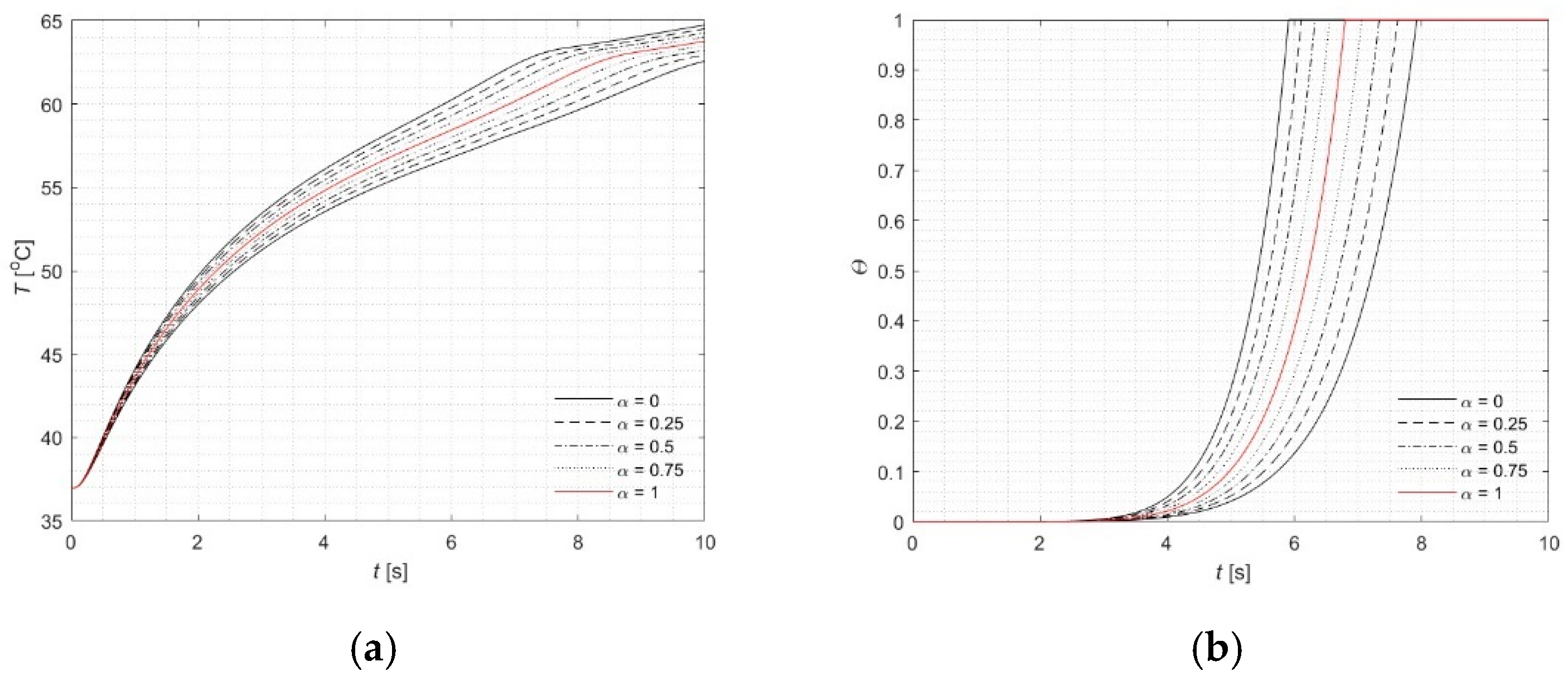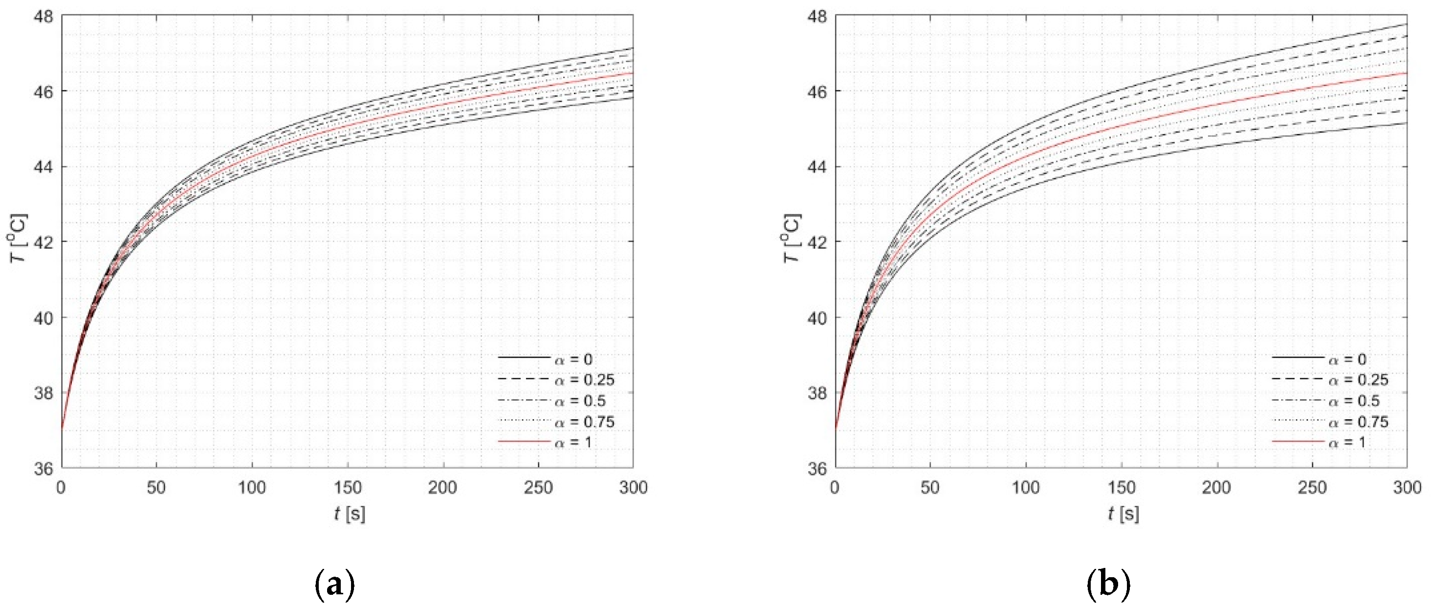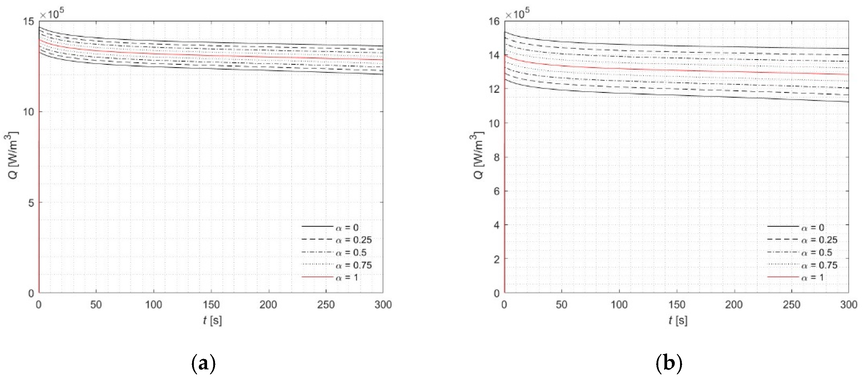 Figure 8). This observation can be physically explained by the fact that the local concentration of nanoparticles directly affects the absorption of energy from the alternating magnetic field, leading to localized heating. Individual lines in the plots correspond to specific α-cut levels. Simulations were conducted for