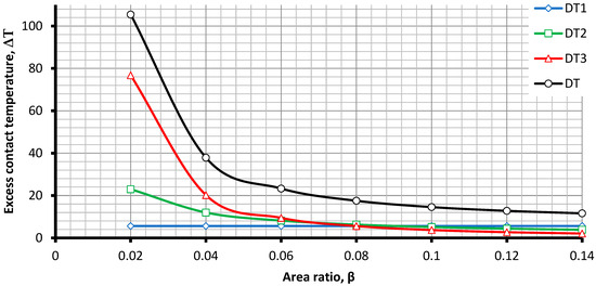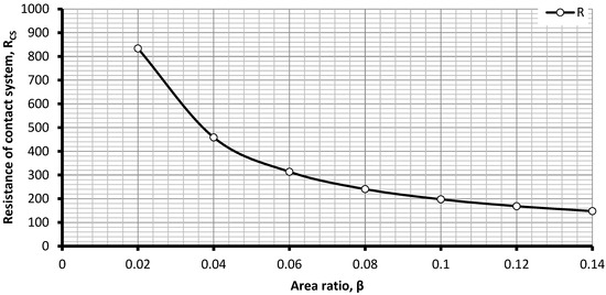 β —the area ratio of the contact spot (Ac—conductive area of the contact and Ab—total area of contact). The calculation is performed for several values of β;