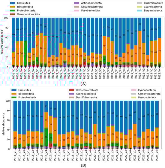3.4.1. Relative Abundance and Microbiota Stability at Population Level