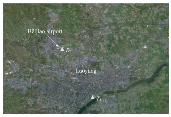 For the measured data validation, historical measured data provided by the Radio Detection Center of Wuhan University is used. The data used is collected with the multistatic passive radar developed by Wuhan University in 2019 at Beijiao Airport of Luoyang City, Henan Province, China, as shown in Figure 3. The illuminator of opportunity used in the field experiment is a television station that transmits DTMB signals. There are mainly two types of planes contained in the observation data, i.e., the A320 and the Cirrus SR20. It is worth mentioning that the SR20 has similar feature sizes to the C172, which is used in the simulation. All measured targets are confirmed through the ADS-B system.