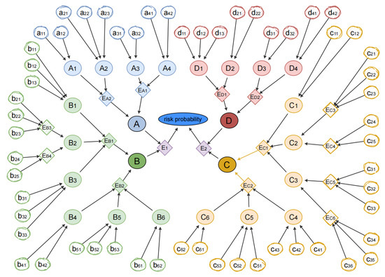 Netica software (version 5.18; Norsys Software Corp., Vancouver, BC, Canada) was used to learn the structure and parameters of the Bayesian network to obtain the posterior probability values of the risk indicators.