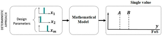 For this analysis, the stability of the slope is almost described by a single value of FoS. This type of analysis uses a mathematical model, typically the LEM, from which a FoS is obtained based on average values of the rock mass properties as input parameters (Figure 2). Therefore, this type of analysis does not explicitly account for uncertainty, and it assumes that the input variables, taken at their average, are certain.
