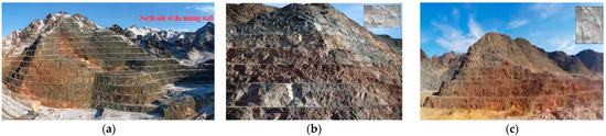 Bayan-Airag open-pit mining wall assessment: the (a) northern wall, (b) northeastern wall, and (c) northwestern wall.