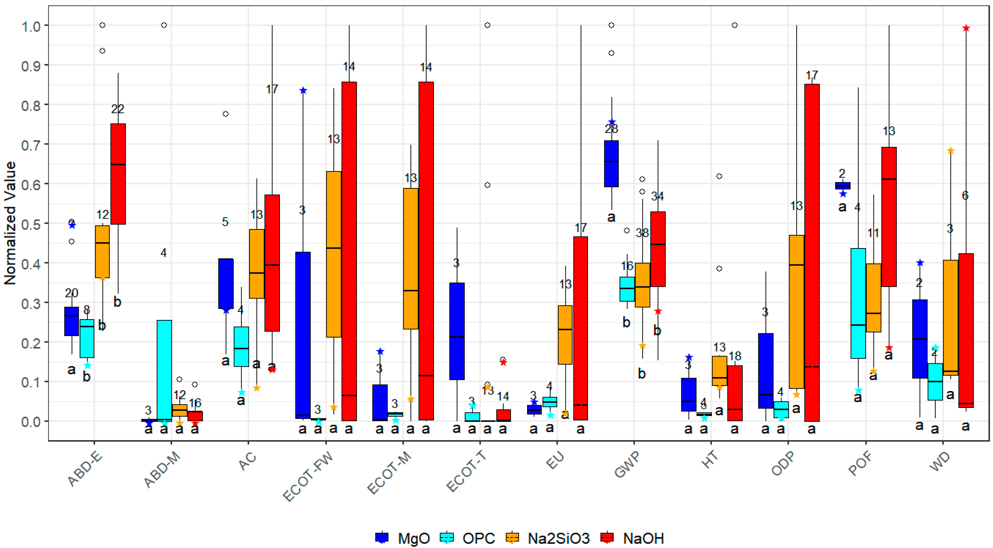2.2. Life Cycle Impact Assessment of Alkaline Activators