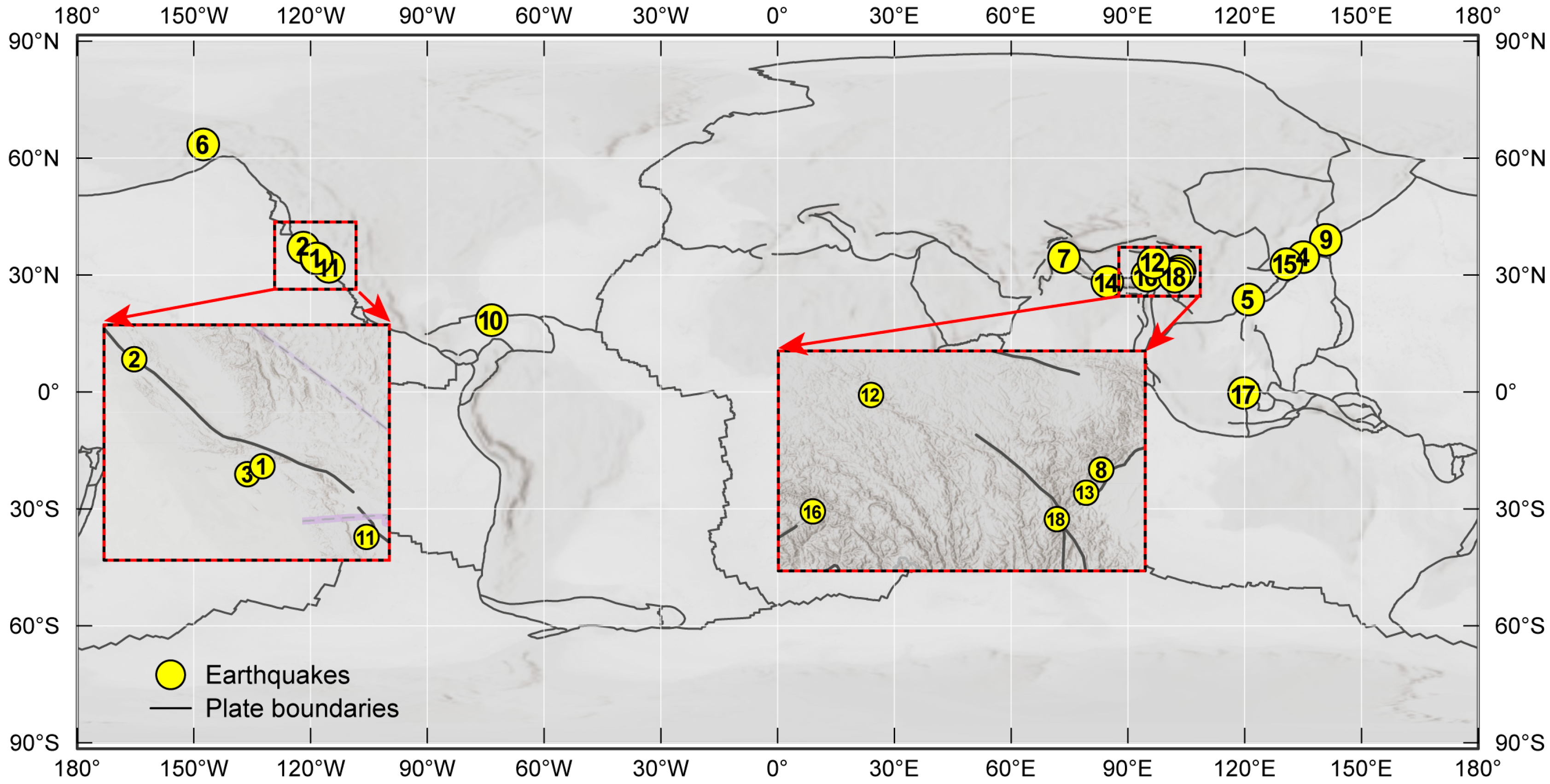 16 | Dip slip | Milin (China) | 17 November 2017 | 6.9 | [65] | [66] |