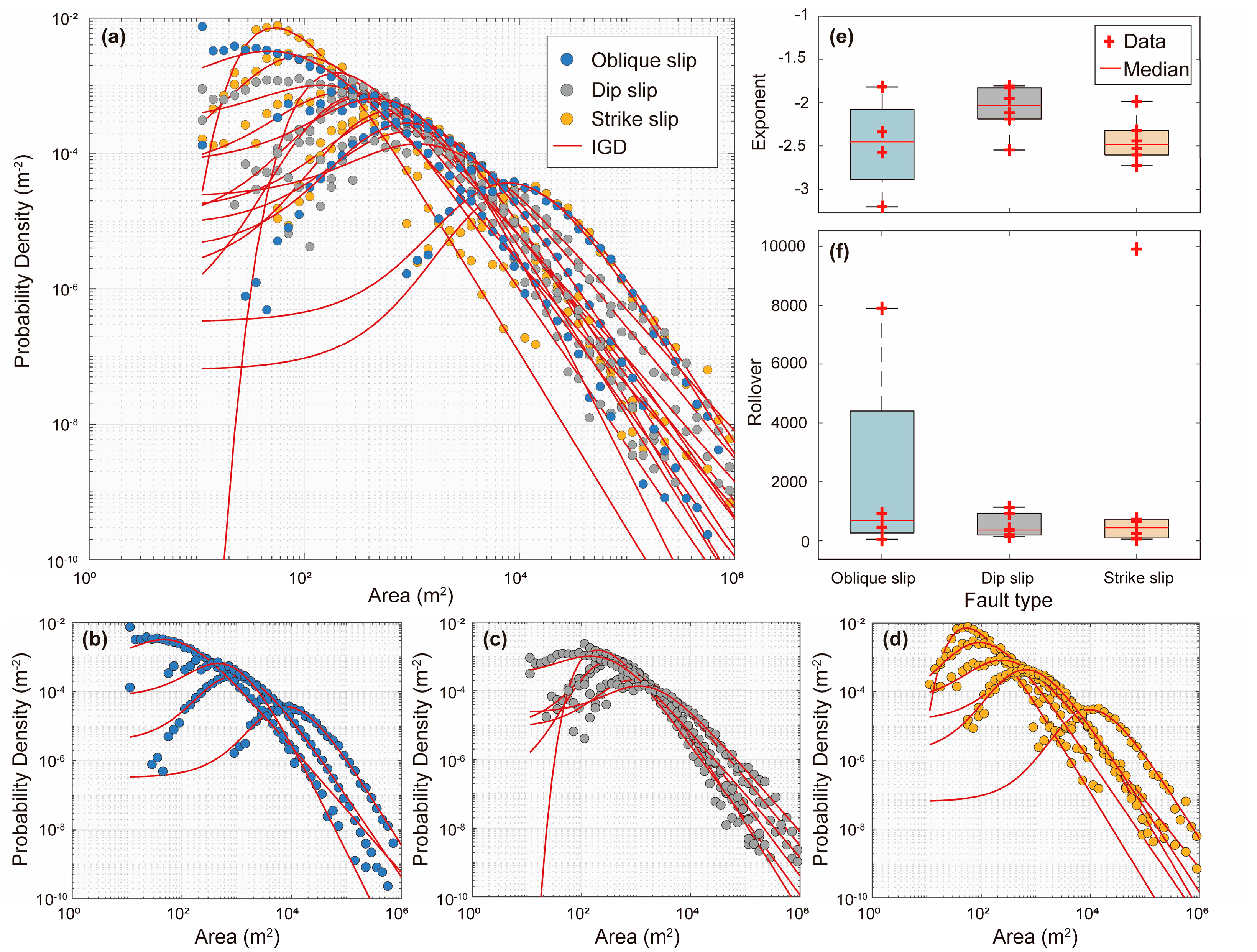 Fault Type | Earthquake Event | Area (m2) | Exponent | Rollover (m2) | ||