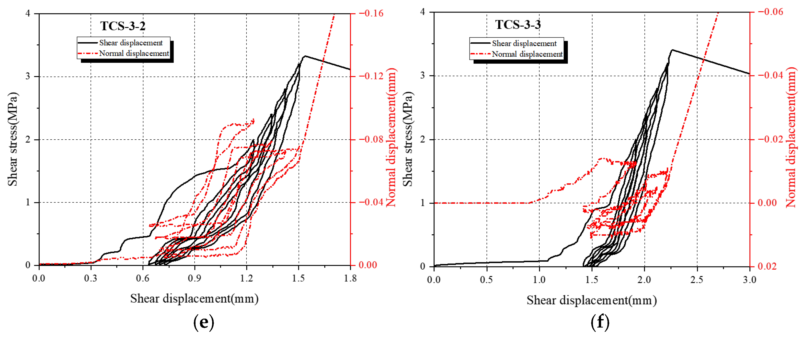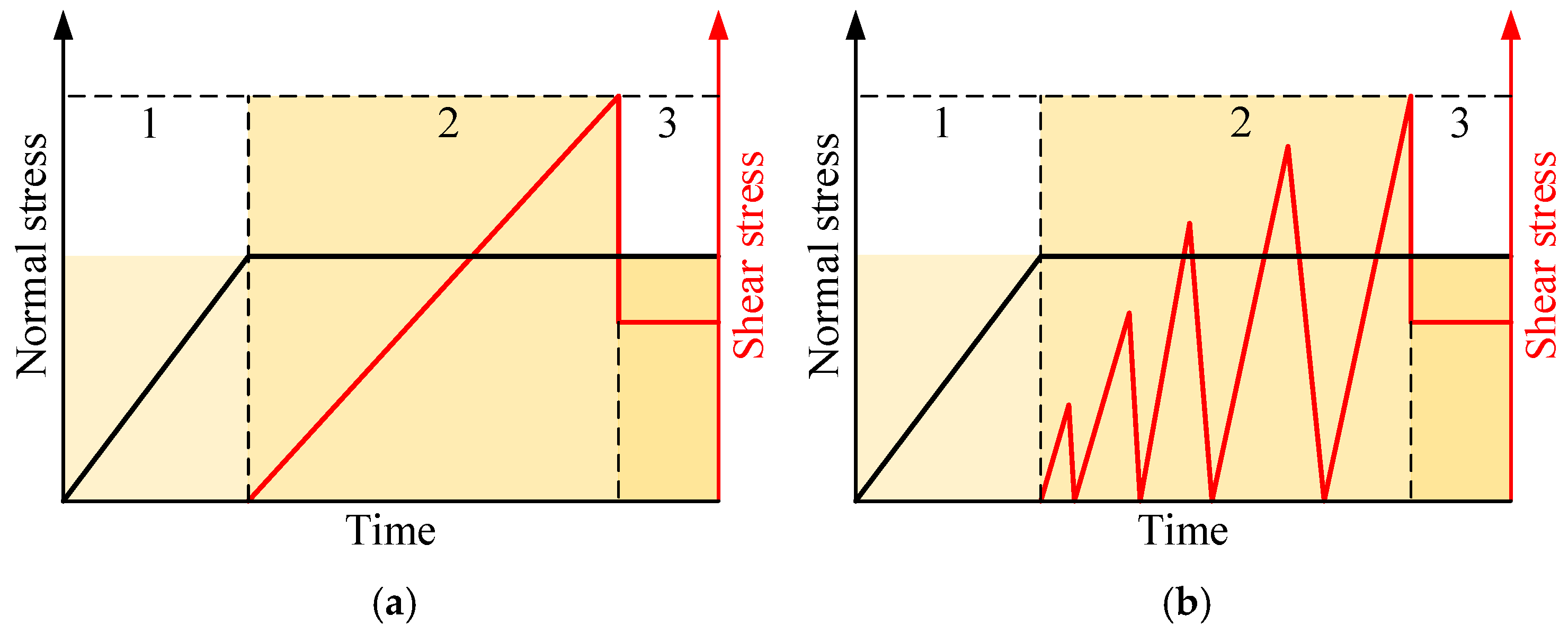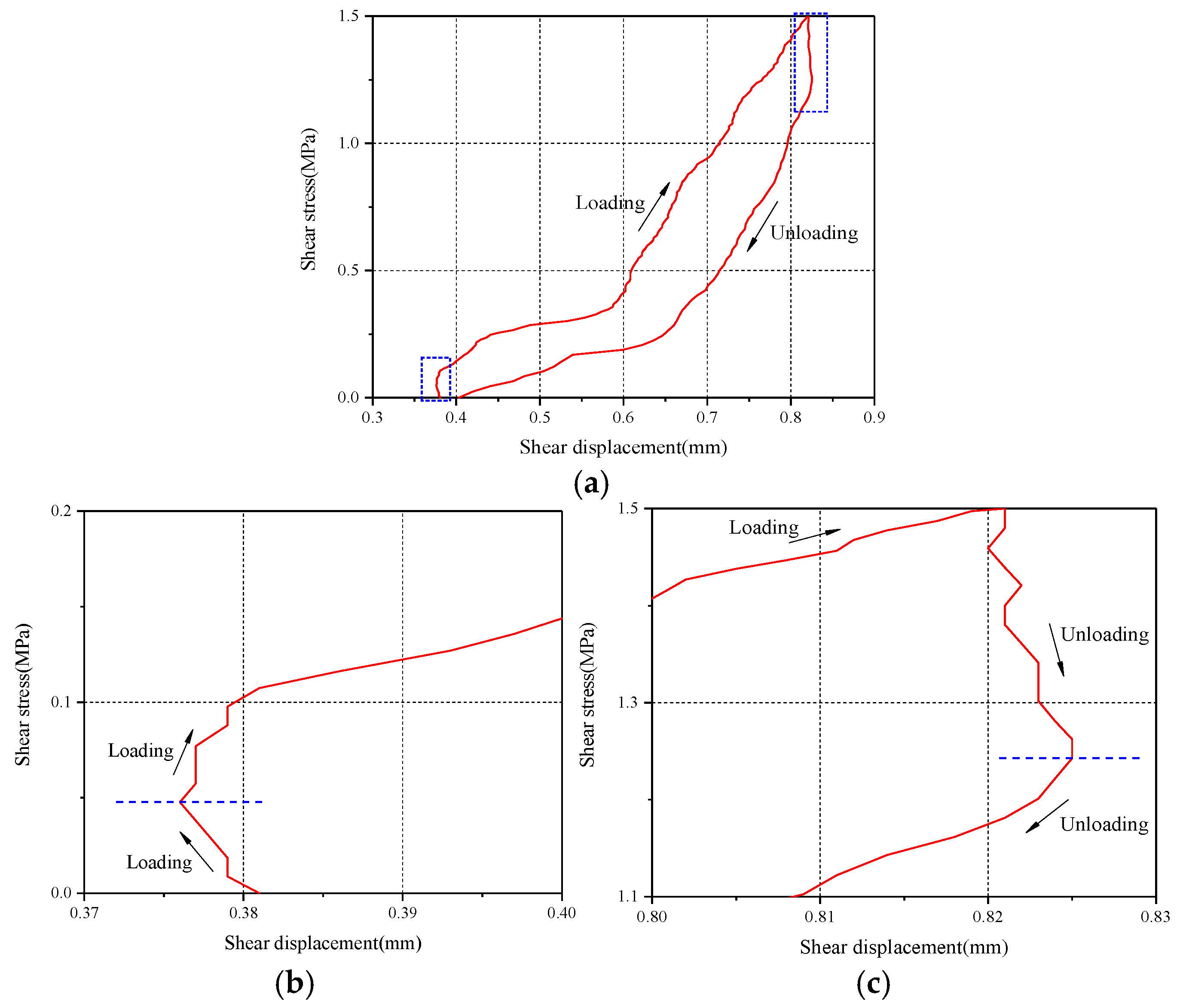 - Yang, X.; Zhou, J.; Song, Y.; Han, X. Evolution characteristics of sliding displacement of rock interface under cyclic loading. J. China Coal Soc. 2019, 44, 3041–3048. [Google Scholar] [CrossRef]
