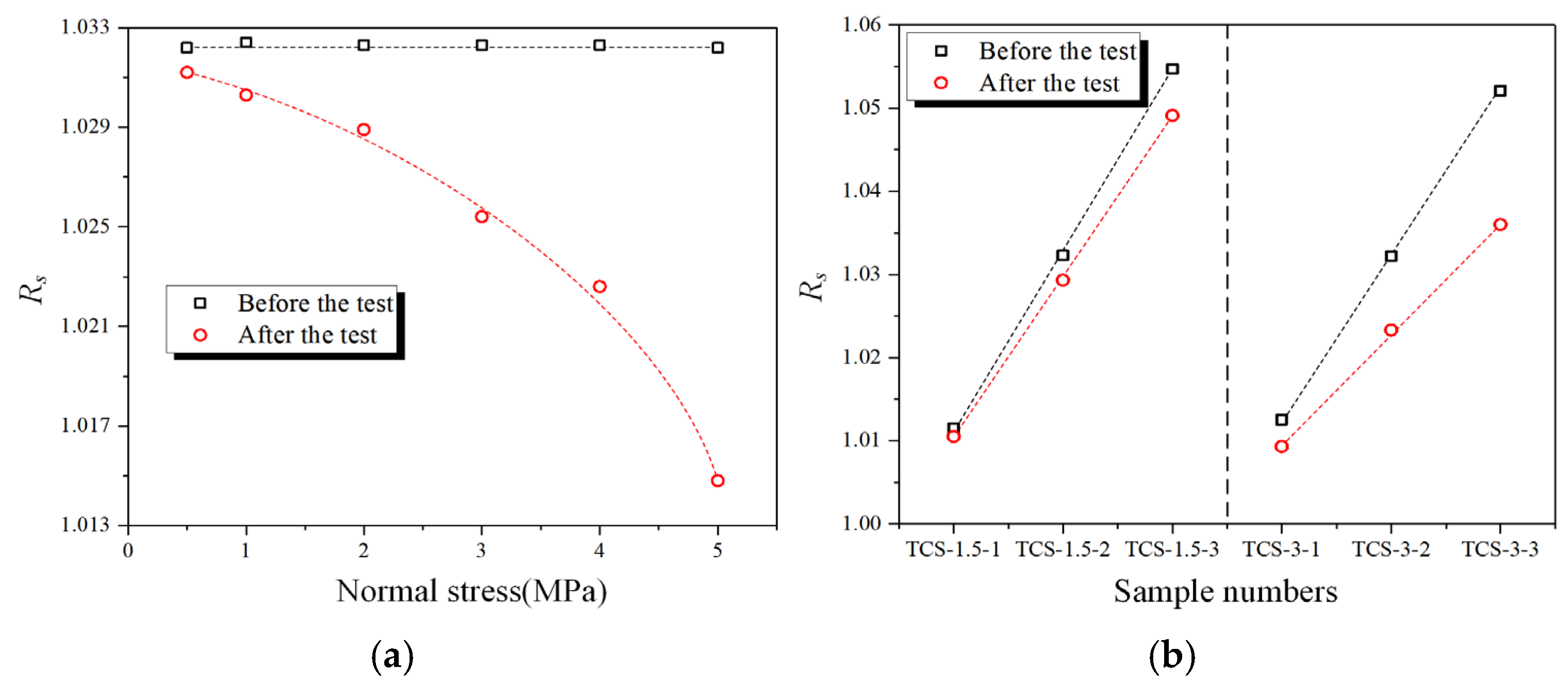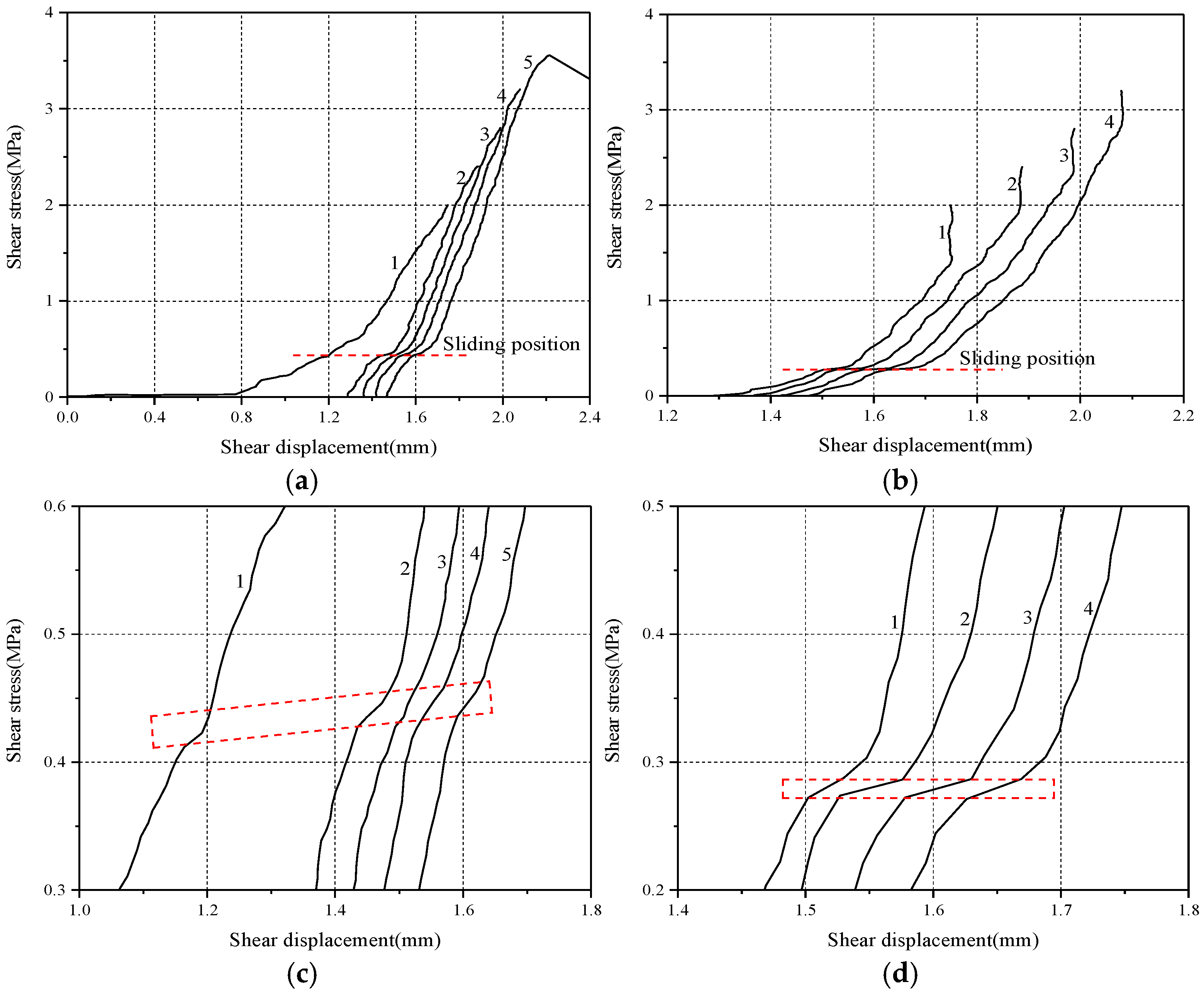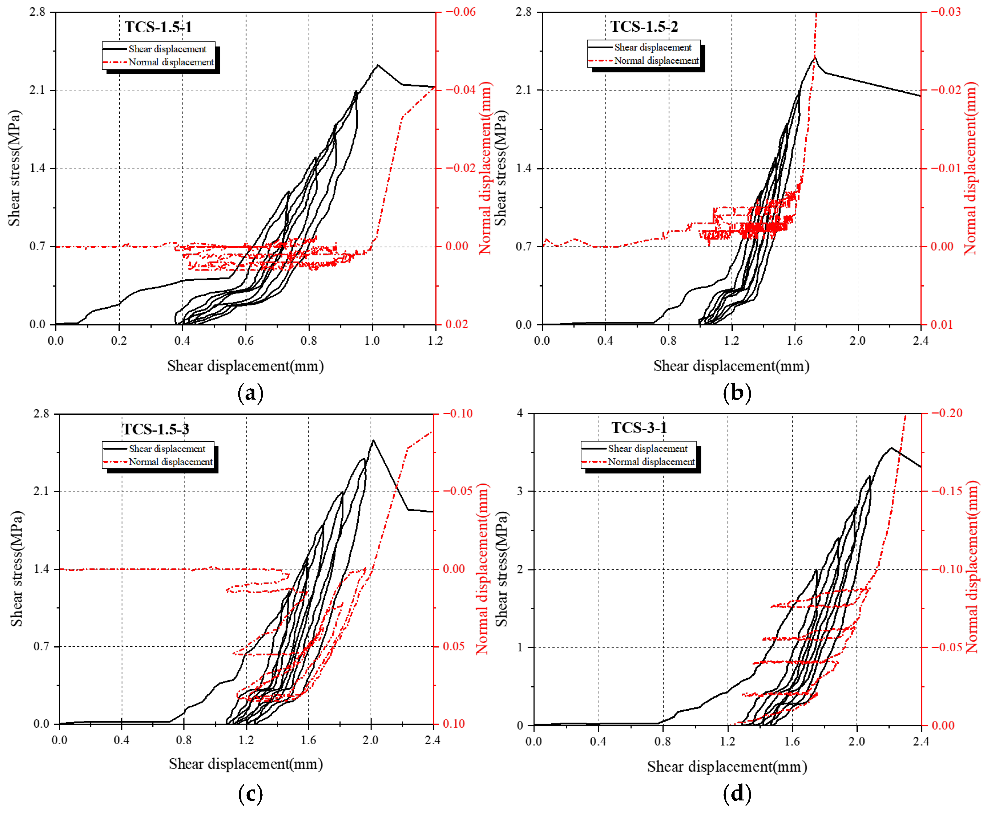 - Yang, X.; Zhou, J.; Song, Y.; Han, X. Evolution characteristics of sliding displacement of rock interface under cyclic loading. J. China Coal Soc. 2019, 44, 3041–3048. [Google Scholar] [CrossRef]