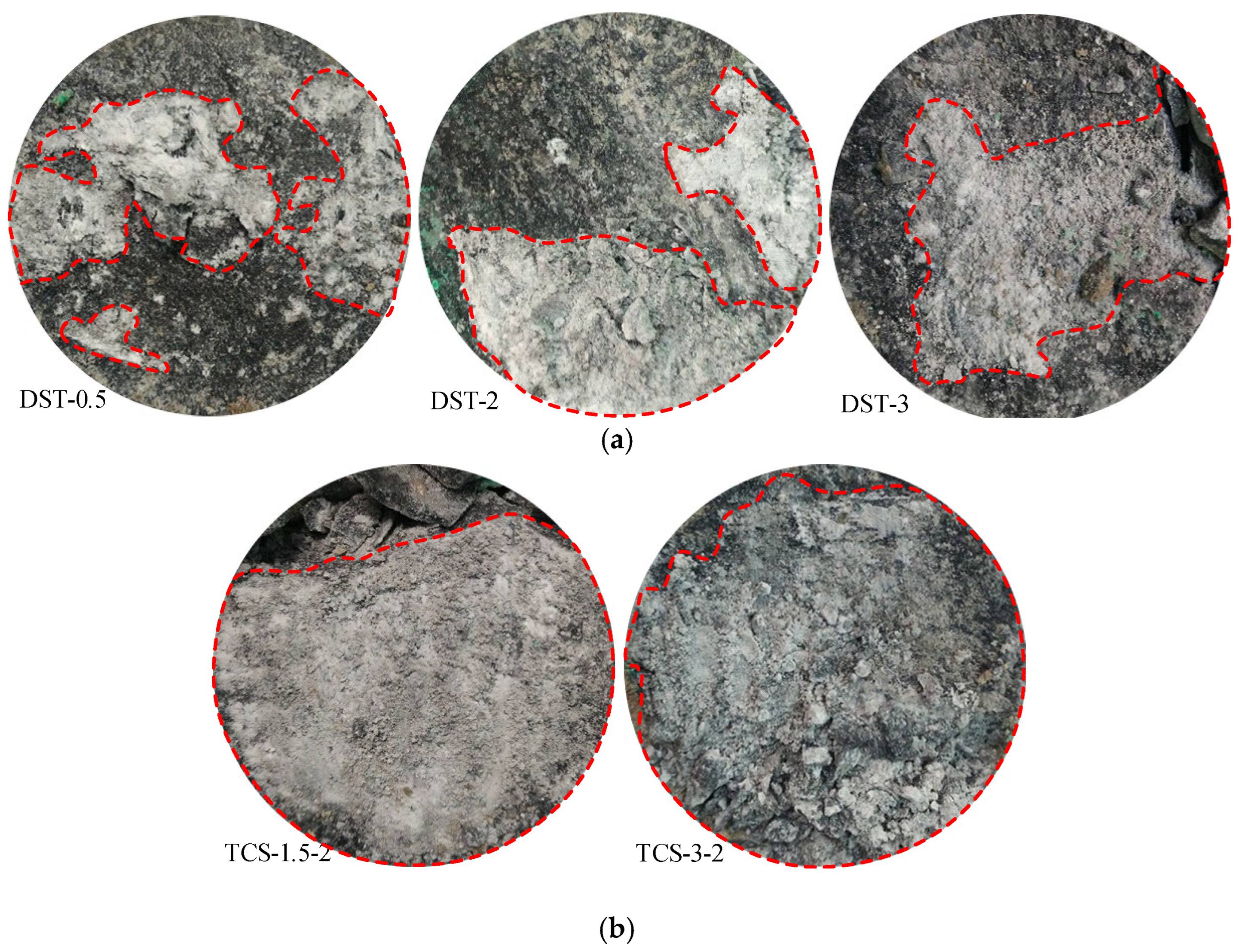 - Liu, X.; Kou, M.; Lu, Y.; Liu, Y. An Experimental Investigation on the Shear Mechanism of Fatigue Damage in Rock Joints under Pre-Peak Cyclic Loading Condition. Int. J. Fatigue 2018, 106, 175–184. [Google Scholar] [CrossRef]