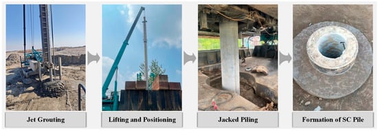 - Insufficient material strength below the variable cross-section, such as crushing of the cement-soil pile at the bottom of the short-core SC piles or the section below the variable cross-section in long-core SC piles, as shown in Figure 3d.