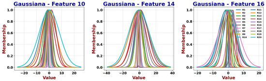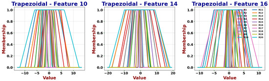 Fuzzy sets are represented by membership functions, typically triangular or Gaussian. In this work, we use three membership functions per feature (two Gaussian and one triangular) to capture variability and uncertainty while preserving interpretability. Among the most widely used fuzzy algorithms, two groups can be distinguished: