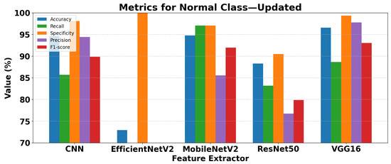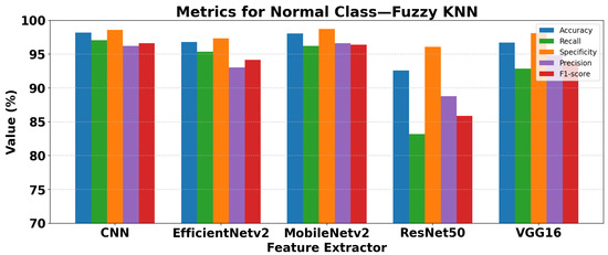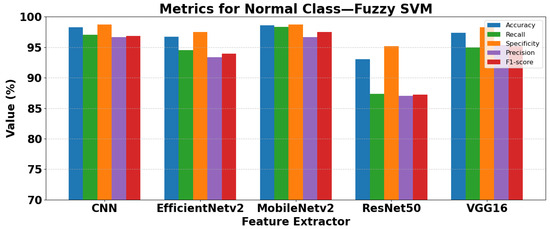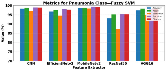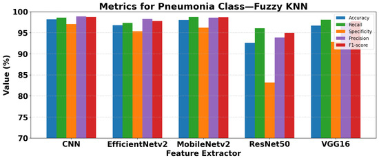 Among the traditional fuzzy methods, Fuzzy KNN and Fuzzy SVM consistently achieve the highest accuracies, above 98%, with strong F1-scores for both Normal and Pneumonia classes. These methods demonstrate a well-balanced performance in precision and recall. Fuzzy SVM slightly outperforms Fuzzy KNN in Pneumonia detection, with an F1-score of 99.06% versus 98.75%.