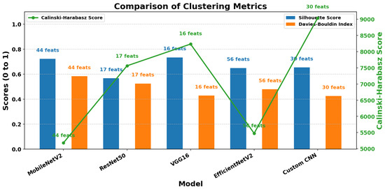 - The optimized feature groups from different CNNs were then compared using clustering-based metrics, namely the Silhouette coefficient and the Calinski-Harabasz index, in order to determine the best CNN feature group for classification.