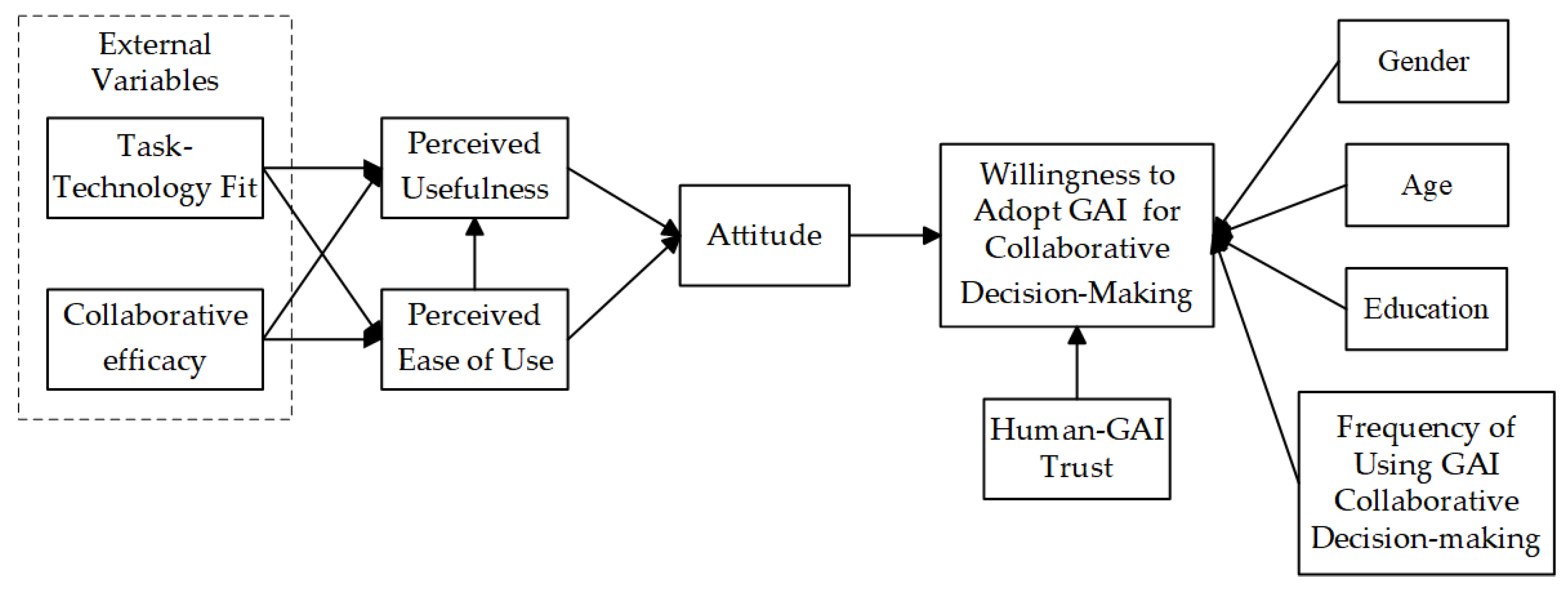 Chicago/Turabian StyleDeng, Jiangao, Feifei Wu, and Jiayin Qi. 2025. "Research on Influencing Factors of Users’ Willingness to Adopt GAI for Collaborative Decision-Making in Generative Artificial Intelligence Context" Applied Sciences 15, no. 19: 10322. https://doi.org/10.3390/app151910322