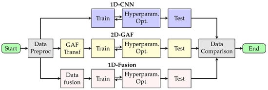 21]. Kou et al. extended this approach by using GAFs to transform acceleration and current signals, which were then processed with infrared images using CNNs to classify tool conditions in milling processes. The authors emphasized that the fusion of heterogeneous sensor signals enables higher model performance by linking complementary information [