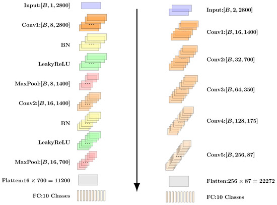 Although the 2D-CNN achieved competitive performance under consistent conditions, its robustness under significant domain shifts (variations in material thickness) remained limited. Moreover, in some samples, the model exhibited critical misclassifications in predicting distant wear classes (e.g., classifying as ), undermining its practical applicability for predictive maintenance. To address this, a 1D-CNN architecture that fuses both acceleration and force signals as dual-channel inputs was investigated. This approach enables the model to learn joint patterns and leverage complementary features across modalities.