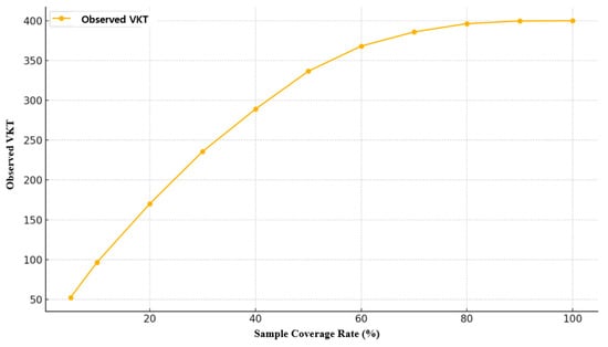 These results provide empirical evidence that a relatively small set of representative routes account for a substantial share of the total VKT, which confirms the efficiency and practical applicability of the representative-route-based VKT estimation approach.