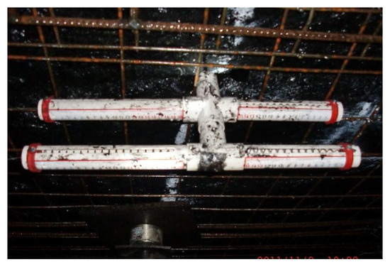 The rock bolts employed in the support scheme have a length of 2.2 m. As illustrated in the monitoring results (Figure 27), the anchorage zone is located within the shallow surrounding rock, which undergoes relatively significant deformation. However, due to the reinforcing effect of the rock bolts, this zone remains stable, and the overall deformation of the roadway remains within the millimeter scale, as shown in Figure 25. These observations demonstrate that the support parameters derived from the proposed design methodology adequately meet the requirements for roadway stability control and exhibit high practical effectiveness(Figure 29 and Figure 30).