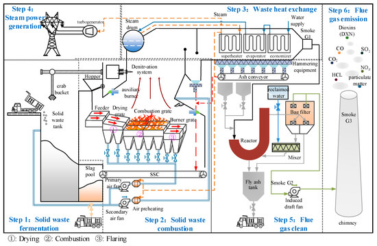 In recent years, the production of municipal solid waste (MSW) has surged, leading to the risk of “garbage siege” in many countries [1]. Currently, there are three main mainstream MSW treatment technologies: landfilling, composting, and incineration [2]. Among them, the first two not only pose environmental hazards, but also occupy land resources; moreover, they also have slower processing speeds and lower reduction rates [3]. Municipal solid waste incineration (MSWI) has a fast processing speed and a high reduction rate, but it also has potential environmental hazards in unstable operating conditions. Considering environmental factors and without sufficient advanced technological support, the industry generally prefers to adopt landfilling and composting treatment. However, with the development of advanced technologies such as artificial intelligence and control algorithms, the environmental hazards of MSWI have become controllable [4].