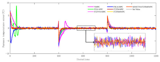 Therefore, MSWI has become a key technology for global environmental governance with its advantages of fast treatment speed and high reduction rate [5,6]. As one of the key controlled variables of the MSWI process, furnace temperature (FT) is directly related to system stability, incineration efficiency, and pollutant generation [7]. At present, an automatic combustion control system is often used to control FT in industrial sites [8], but usually, the instability of MSW calorific value, serious equipment wear, and frequent uncertain disturbance will reduce the actual control effect and even affect the overall stability.