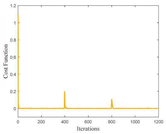 From Equation (31), the Jacobian matrix is the key to calculating the control law of rolling optimization. To reduce the volume of computation, the control horizon is set as 1, and solved using the recursive computation of the Jacobian matrix [36].