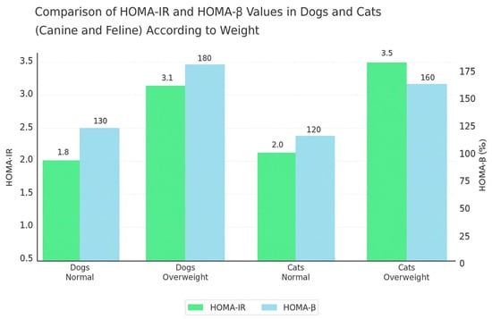 HOMA-IR and HOMA-β values in companion animals (dogs and cats) [19,53,71].
