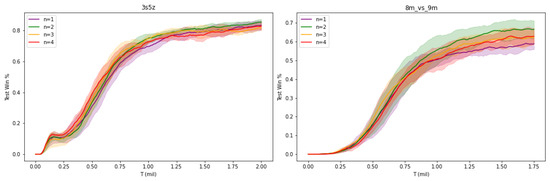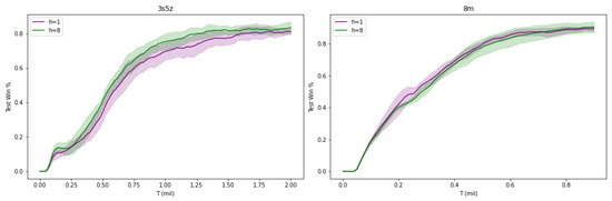 The result is shown in Figure 4. According to the results, increasing the number of GCN layers within a certain range can improve the final win rate of the algorithm, while an excessively large number of layers leads to a decline in performance. In the scenarios of 3s5z and 8m_vs_9m, the learning performance reaches its optimal level with 2 layers. For an overly large number of GCN layers, on the one hand, as the number of layers increases, the gradient during backpropagation becomes increasingly smaller, causing slow weight updates in the layers closer to the input, i.e., the vanishing gradient problem; on the other hand, information can be lost or overly smoothed during multi-layer propagation, making it difficult for the node feature representations to accurately reflect their intrinsic characteristics and the differences among neighboring nodes.