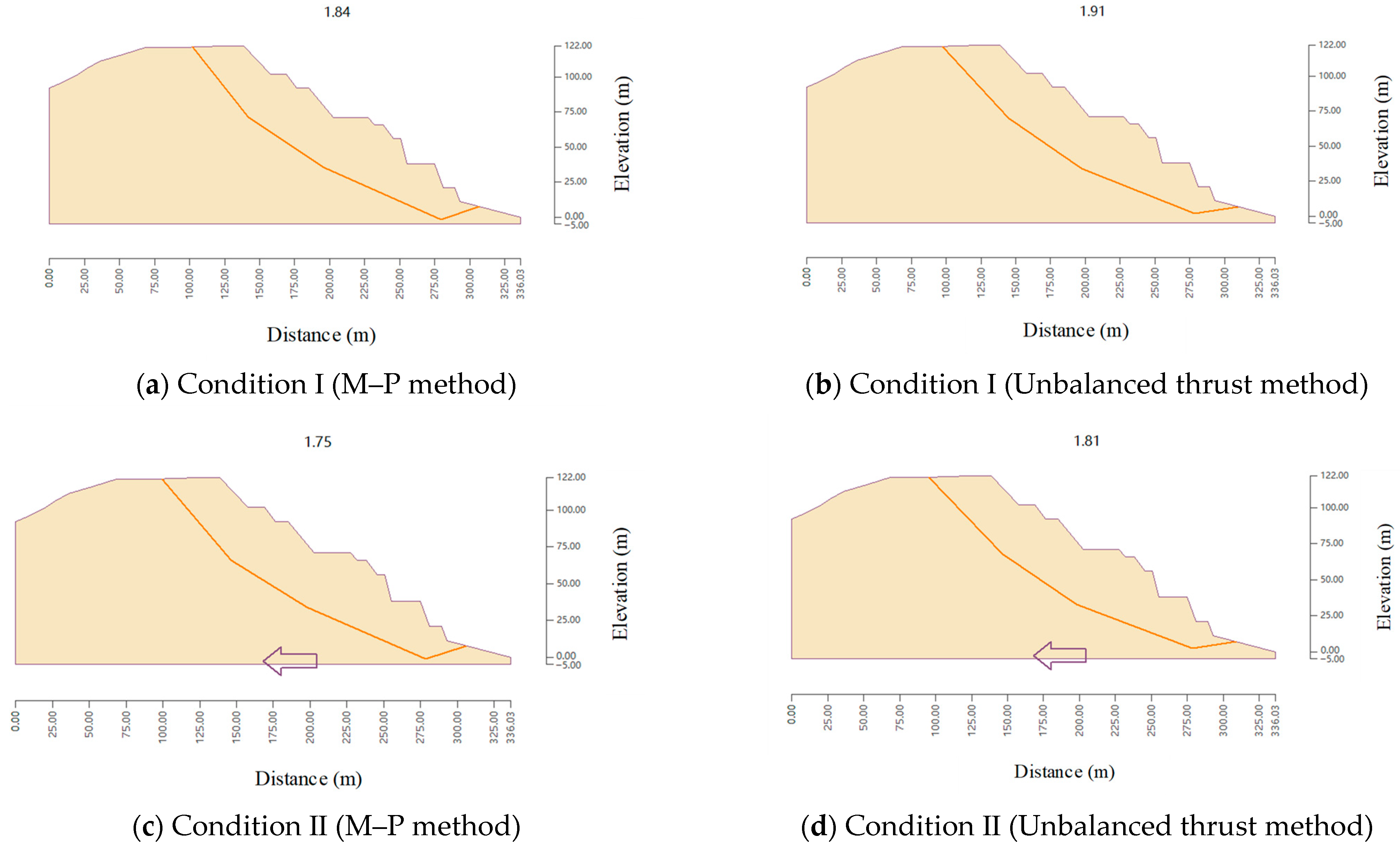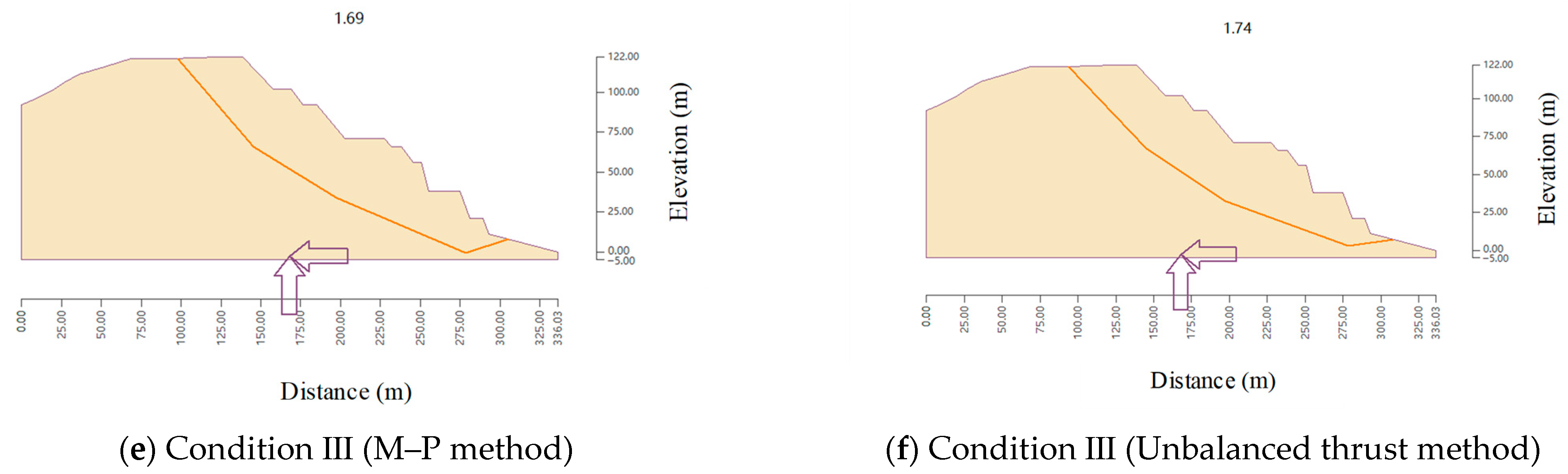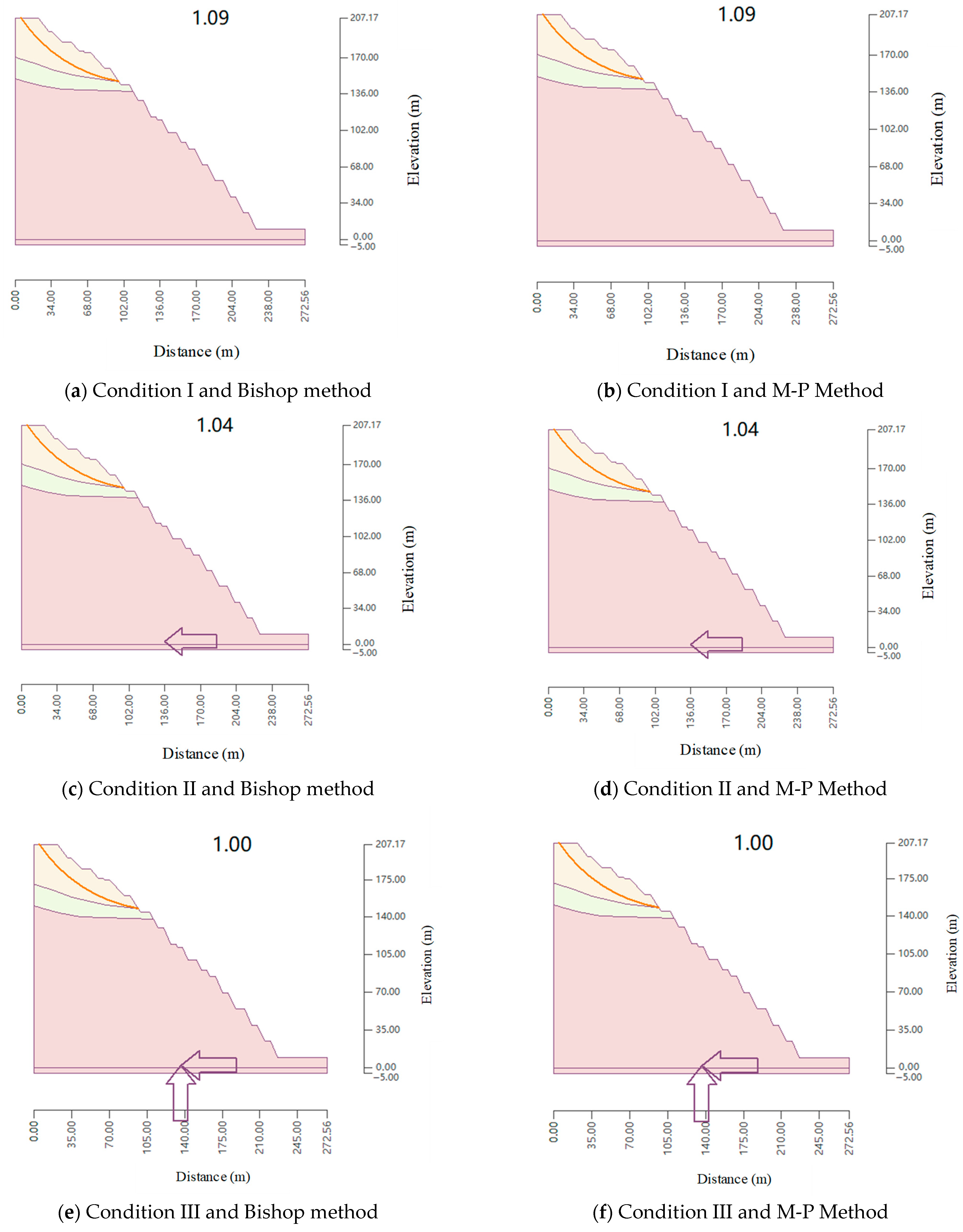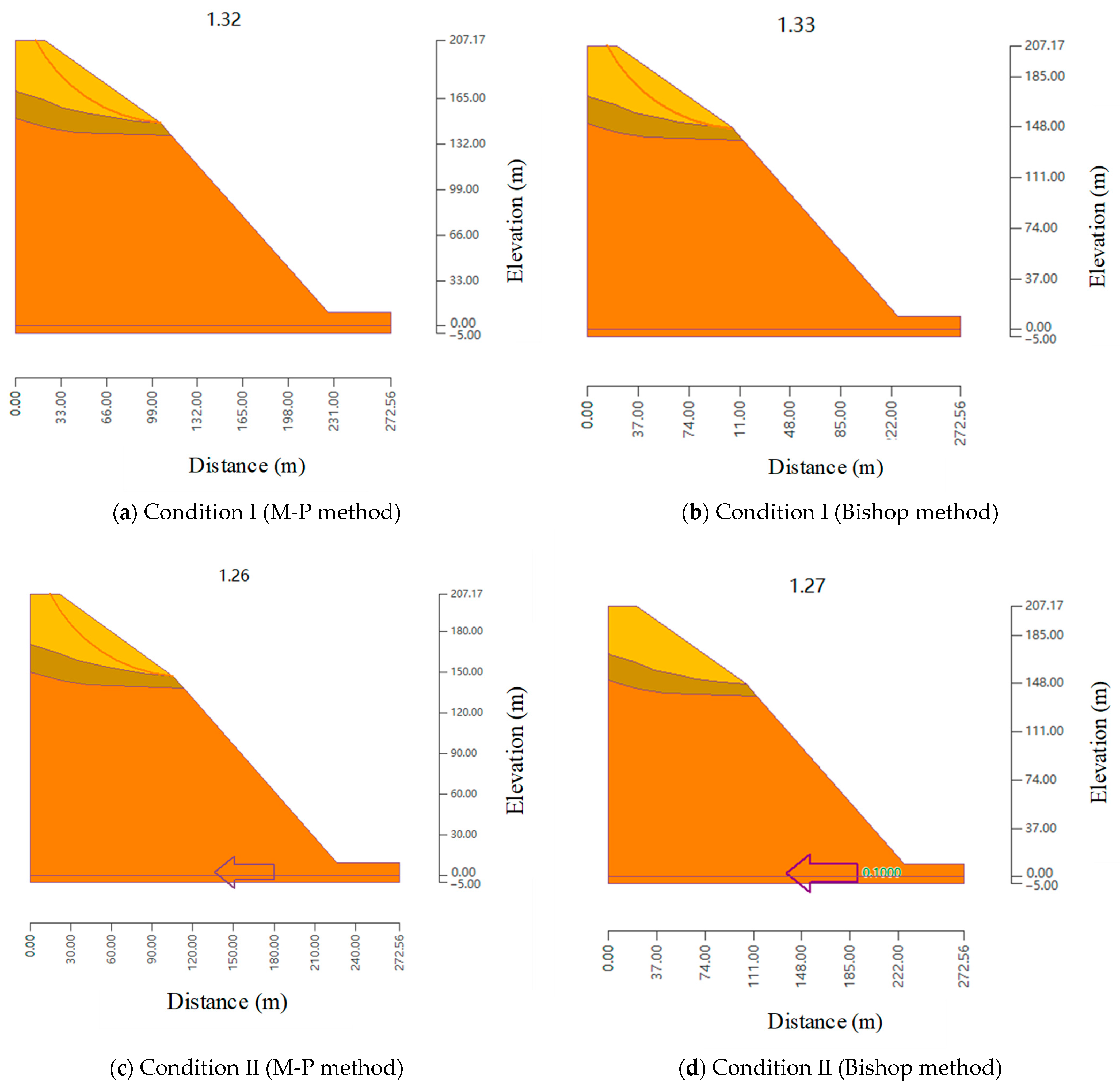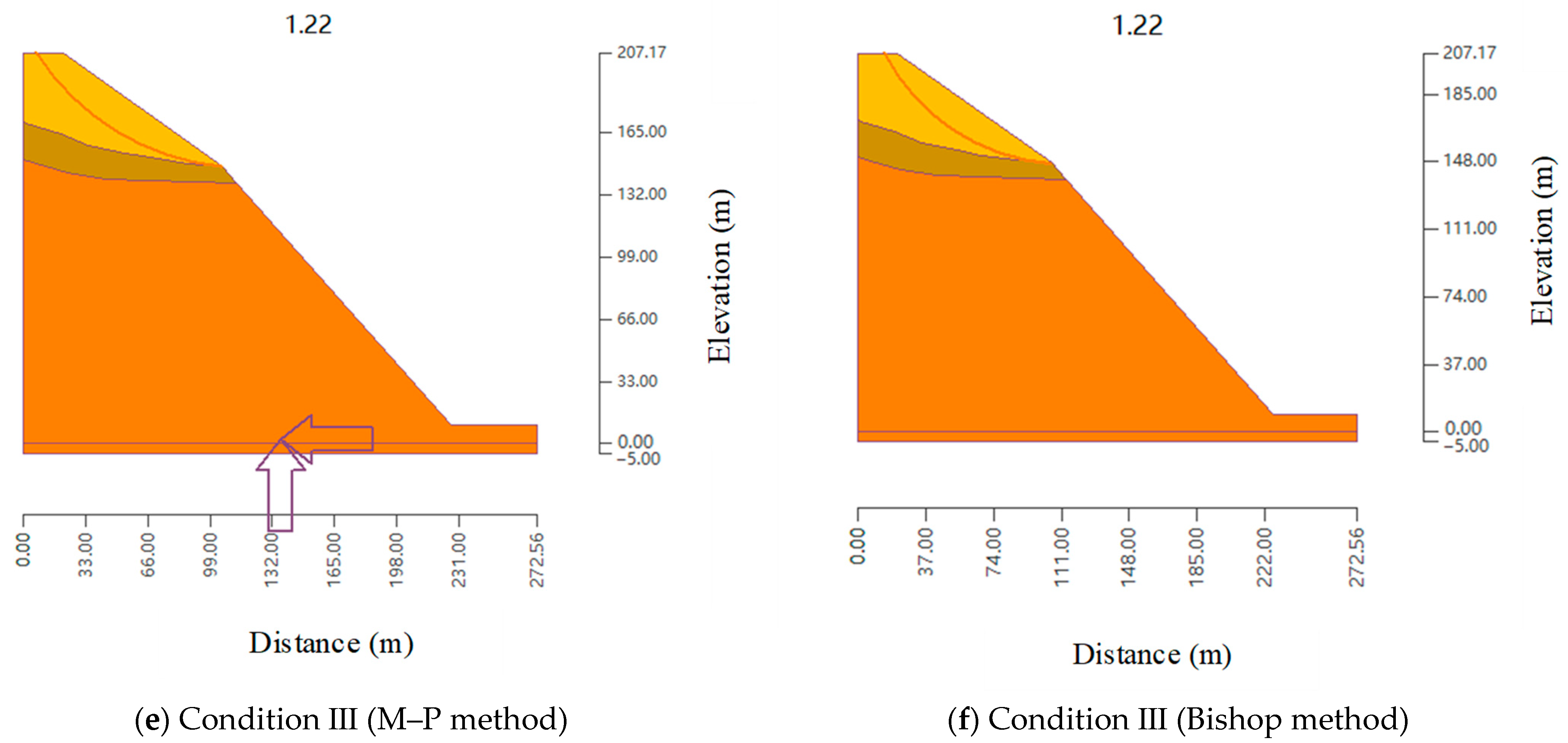 | Condition | M–P Method | Bishop Method | Min | Is It Stable |