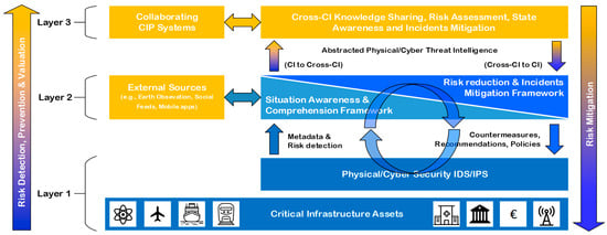 - Layer 1 is the CI-specific Incident Detection System (IDS) or civilian Command, Control, Communications, Computers, and Intelligence (C4I) systems. It is responsible for CI-specific information gathering and CI observation, including physical (i.e., hazard/threat-specific sensors, video surveillance, drones), cyber (e.g., complex data from PLC, SCADA, IDC, and network connectivity systems), and Humans in Vicinity (HiVIC) as human sensors.