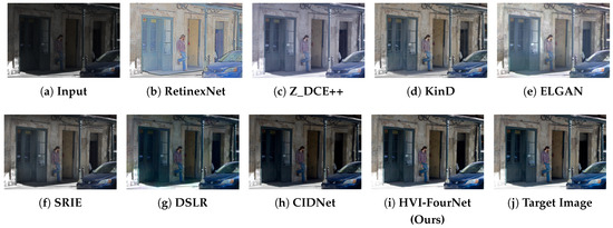 - Fu, Z.; Yang, Y.; Tu, X.; Huang, Y.; Ding, X.; Ma, K.K. Learning a simple low-light image enhancer from paired low-light instances. In Proceedings of the IEEE/CVF Conference on Computer Vision and Pattern Recognition (CVPR), Vancouver, BC, Canada, 17–24 June 2023; pp. 22252–22261. [Google Scholar] [CrossRef]