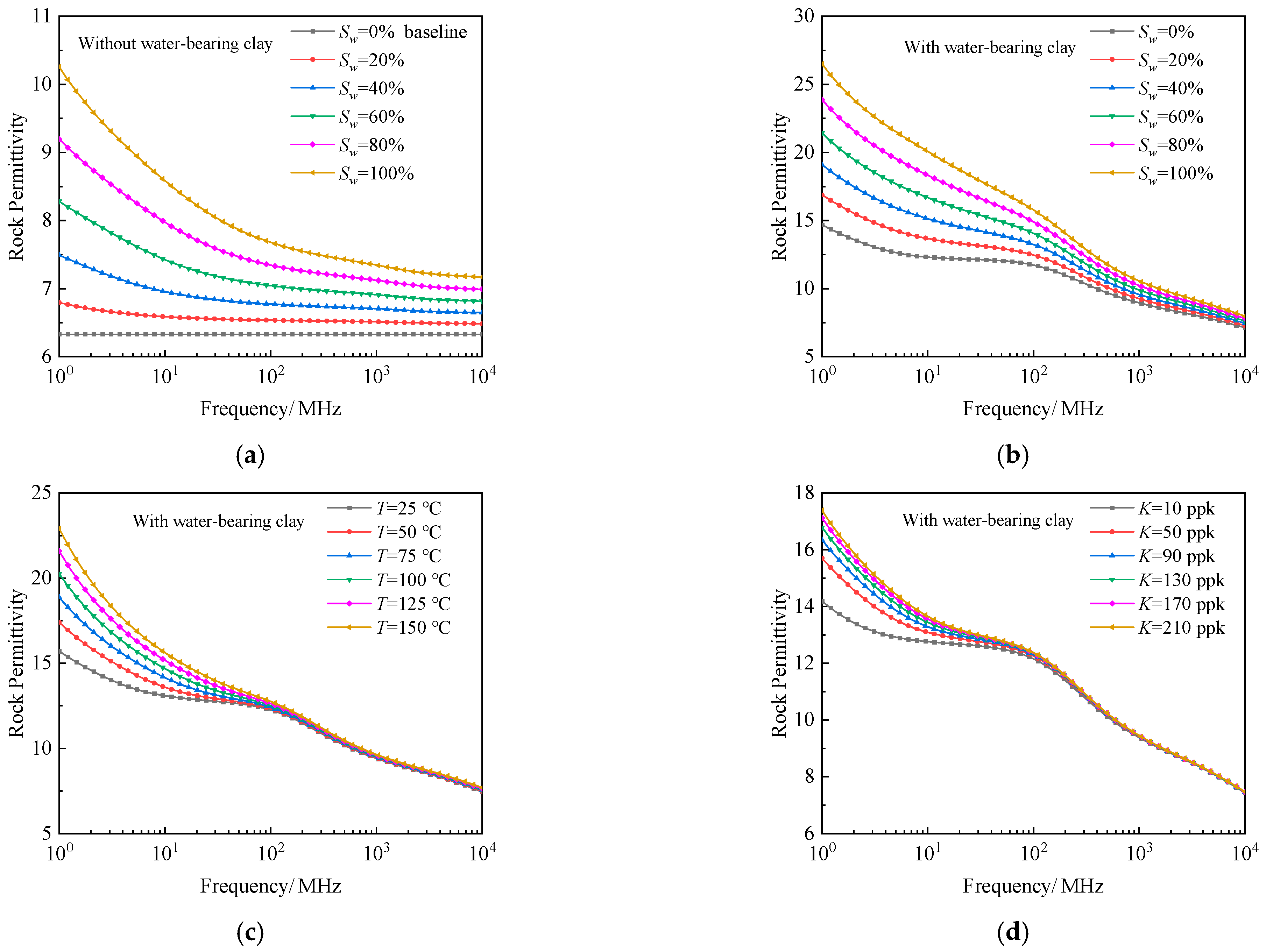 3.1. Dielectric Dispersion Analysis of Clay-Bearing Shales