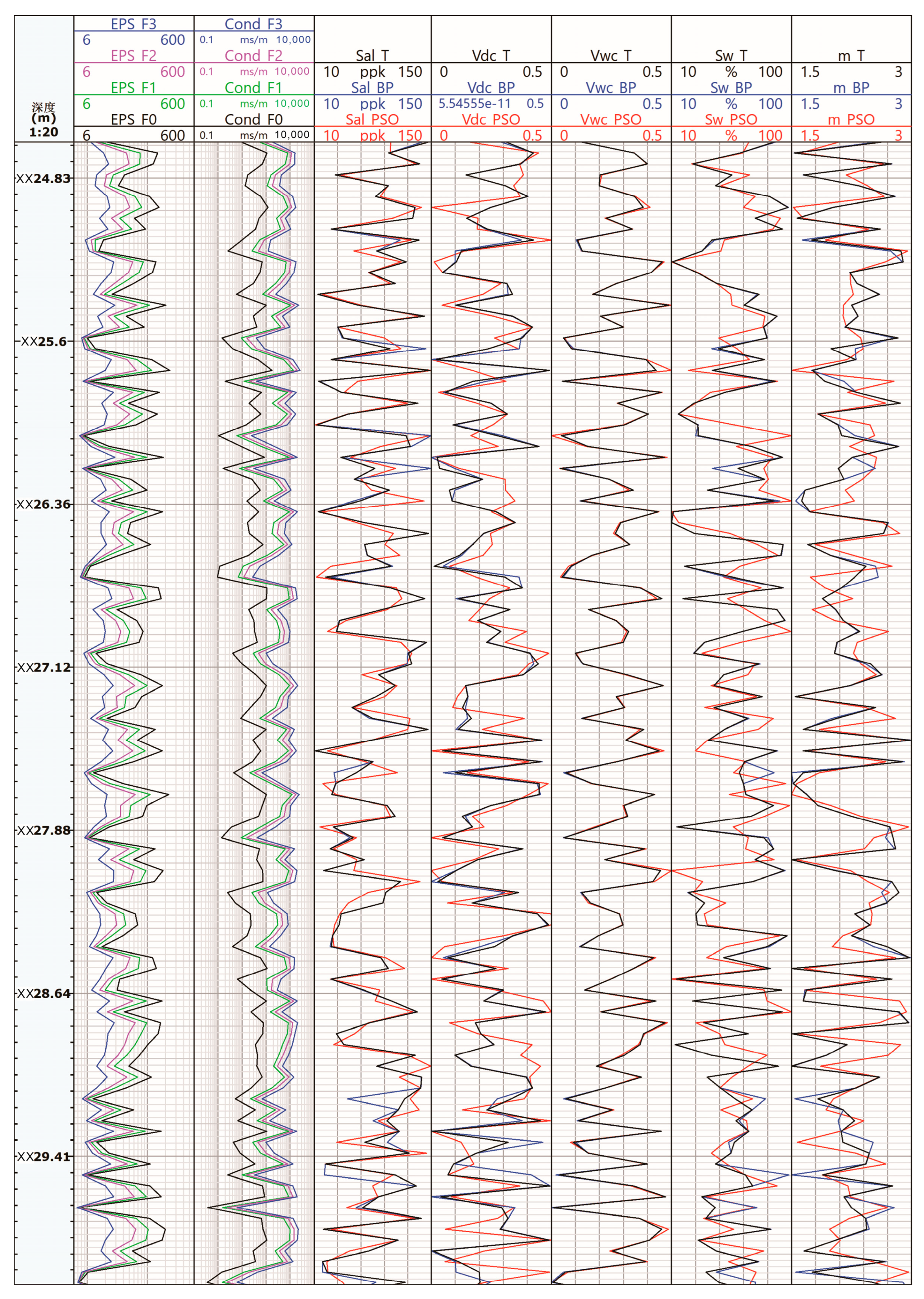 - The correlation coefficients of calculated values of water salinity, cementation exponent, clay content, clay moisture content, and water saturation can all reach above 99% for each sub-sample database based on BPNN models when the temperature and the porosity are obtained by other methods.