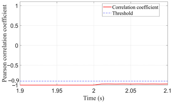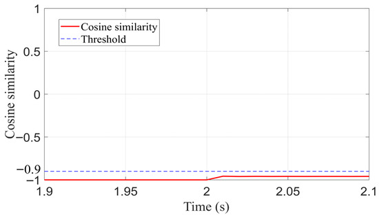To further validate the novelty and effectiveness of the proposed method, it is compared with the Pearson algorithm and the cosine similarity method. Considering extreme fault conditions, a ground fault with a grounding resistance of 100 Ω is applied 3–4. The simulation waveforms of the three protection schemes are compared as shown in Figure 11, Figure 12 and Figure 13 below.