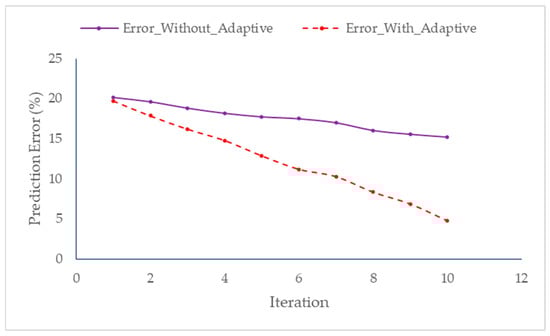 Figure 10 shows the trend of the forecast error reduction for the key variable “delivery cost” over 10 periods. It can be seen that the use of adaptive learning has led to a significant reduction in error and faster convergence of the model compared to the case without learning.
