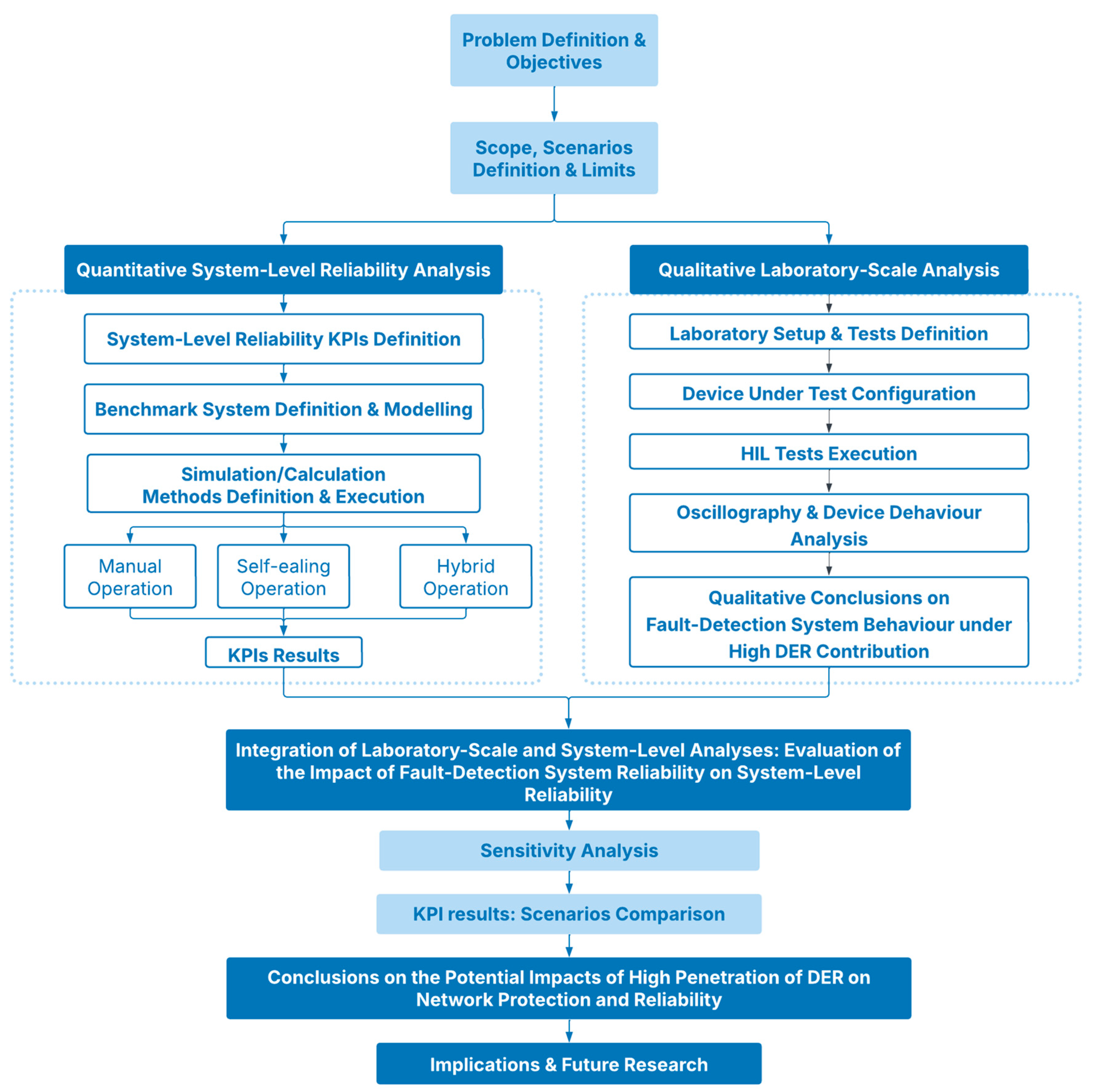 The methodology integrates laboratory testing of protection devices under DER injection conditions with system-level simulations on a benchmark MV network, enabling quantification of reliability impacts across a range of operational scenarios.