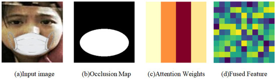Visualization of intermediate results: (a) Input image, (b) Occlusion map, (c) Attention Weights, (d) Fused Feature.