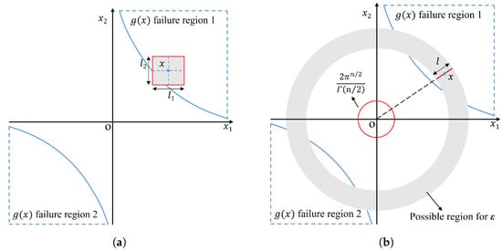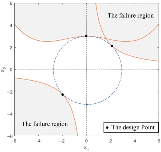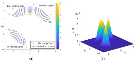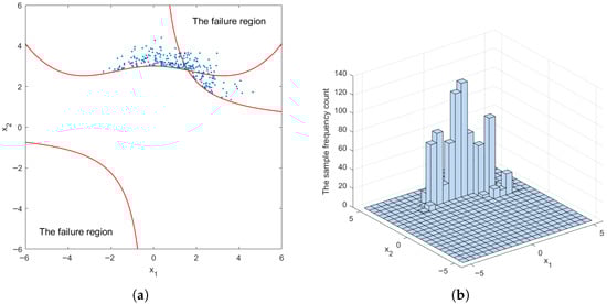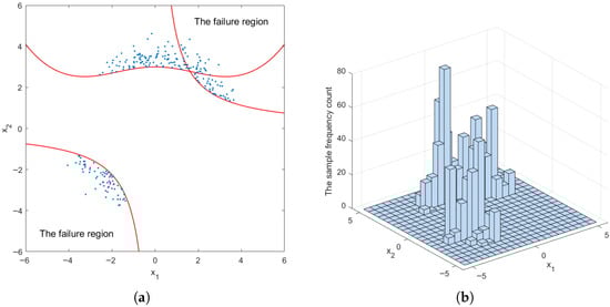 However, when the performance function’s failure domain has discontinuous regions, using Equation (16) as the proposal distribution function has shortcomings. If values are too small, the jumpiness of the sampling process will be insufficient, making it difficult for the sampled points to cover all failure domains of the performance function. If values are too large, the sampling range increases, but it may produce a large number of repeated samples. Both of these situations will result in the samples obtained by MCMC failing to comprehensively reflect the actual distribution characteristics of the performance function’s failure domain samples.