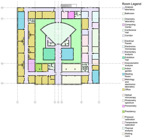 The building structures of the Sotacarbo headquarters can be divided into three main functional blocks based on their use. The first main building block hosts offices, laboratories, as well as an archive, meeting, and conference rooms (as shown in Figure 6).
