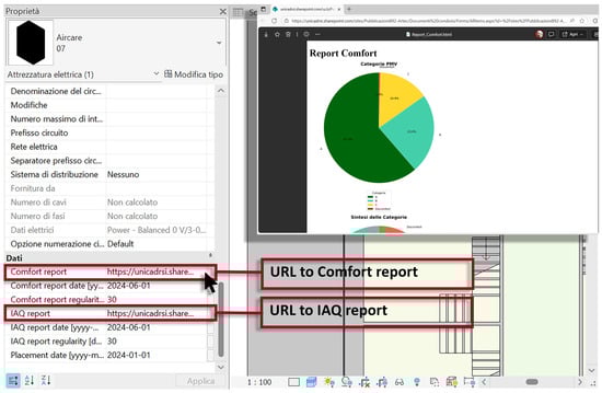 The HTML reports, one regarding comfort assessment and the other concerning IAQ, have been designed to be easily integrated into BIM models by taking advantage of specific URL parameters associated with each sensor component. Additionally, they also make all relevant information accessible to users lacking any specific technical skills.