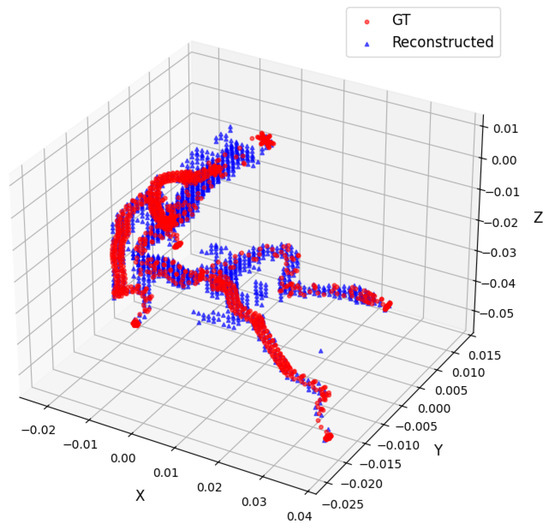 The quantitative assessment was performed utilizing ground truth point clouds from a synthetic dataset and the point cloud retrieved by the algorithm, having both point clouds voxelized for the comparison on each metric so that they consist of 3 × 3 × 3 [mm] vertices. The chosen voxel size does not affect morphological traits of the artery, at the same time not penalizing minor discrepancies from the ground truth, as shown by Martin et al. [33]. The size of the main coronary arteries depends on the specific vessel segment, but on average, their diameter ranges between 1 and 4 mm. Therefore, it was assumed that points are represented by a bounding neighborhood with a side length of 9 mm (corresponding to a 3 × 3 × 3 mm voxel). This allows for the detection of potential bifurcation or trifurcation points [34].