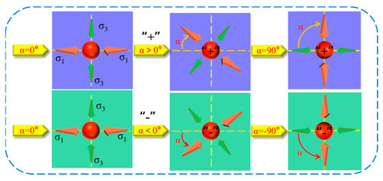 The variation range diagram of the maximum principal stress deviation angle (α).