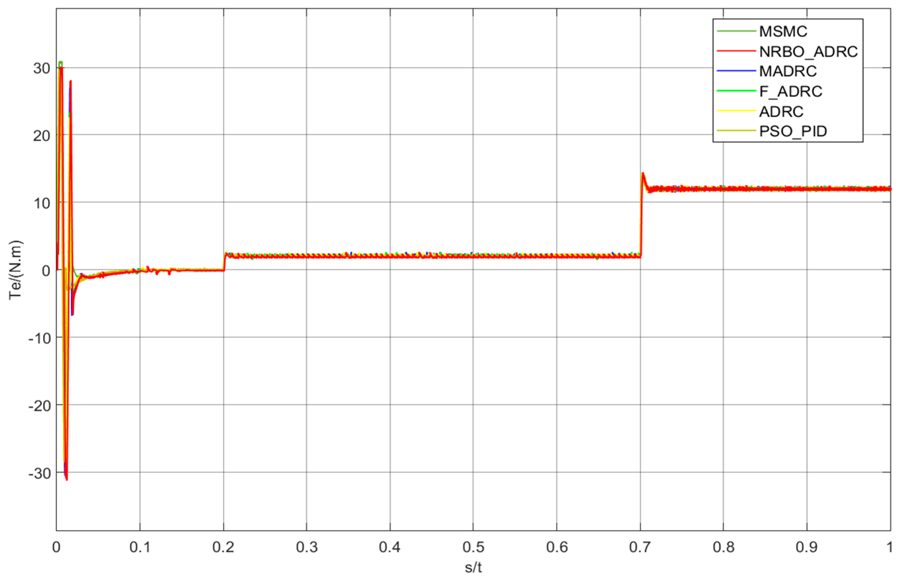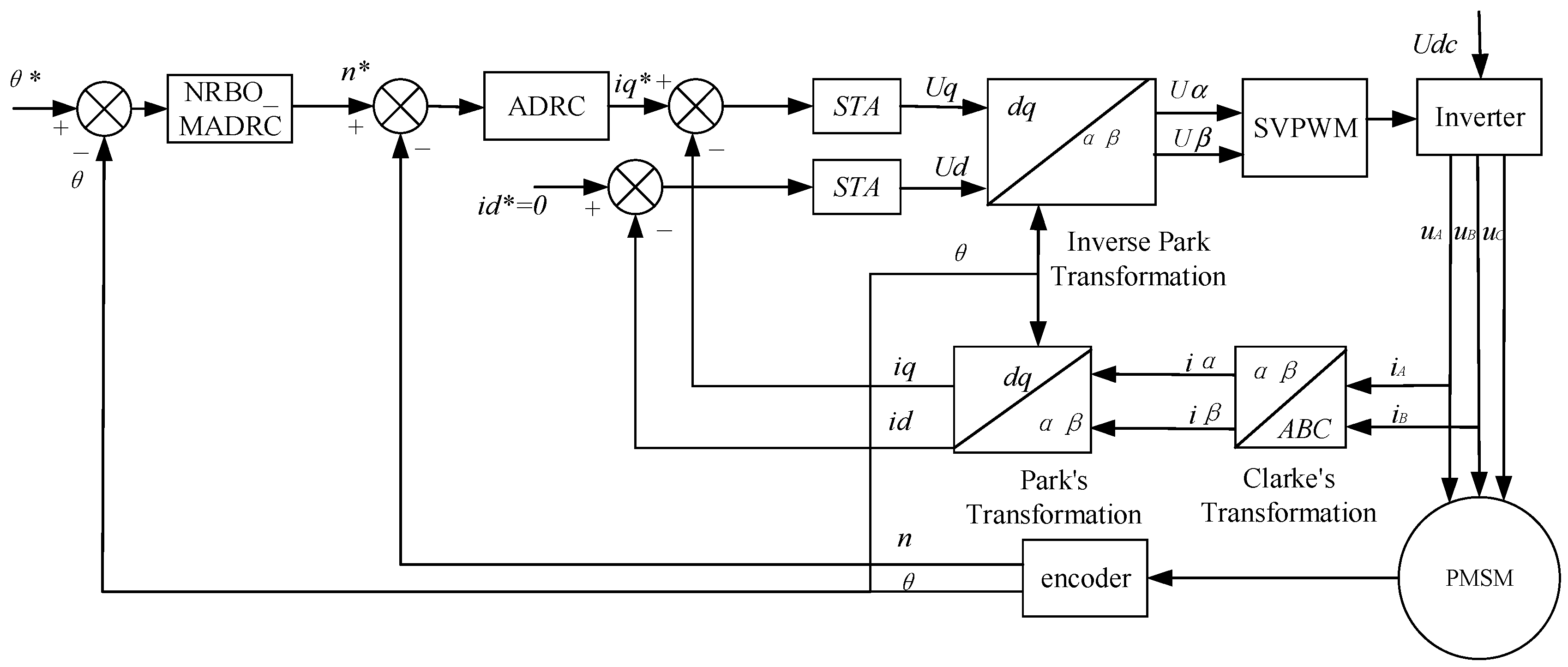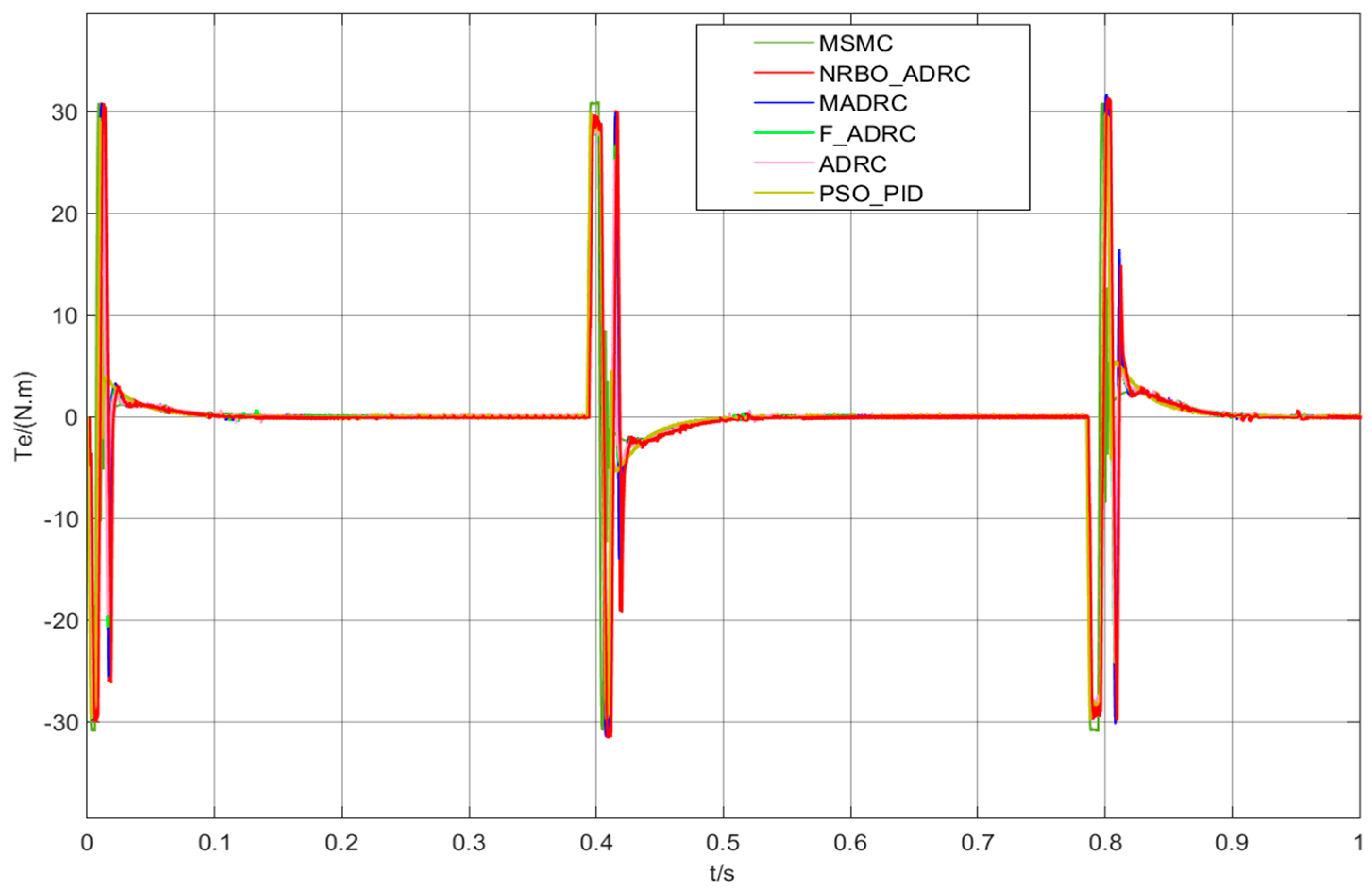 - The improved ADRC-based PMSM position control design can meet high-performance requirements under complex working conditions, thus achieving fast response, minimal overshoot, and strong disturbance rejection capability.