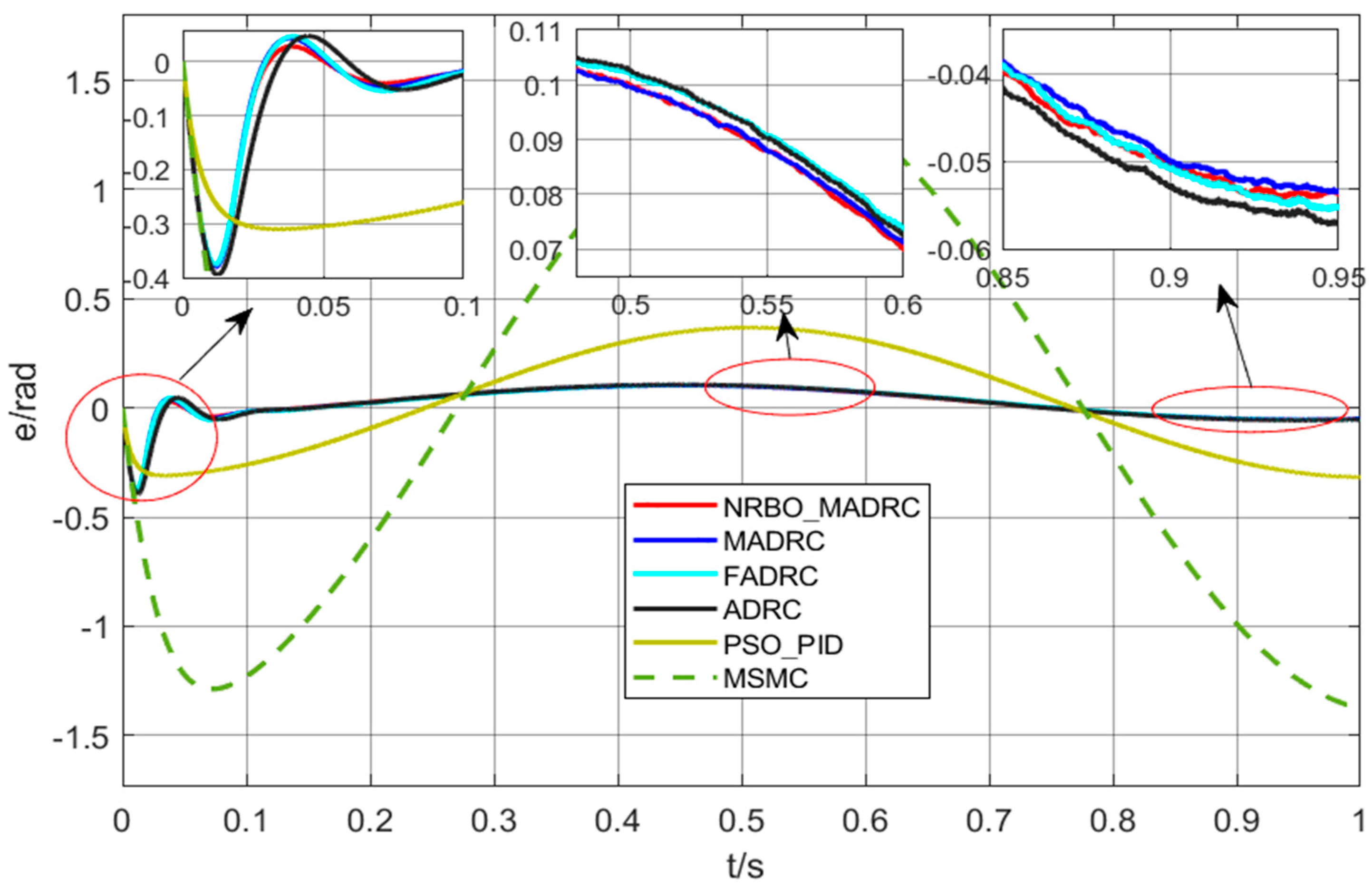 - The ADRC parameter self-tuning based on the NRBO eliminates the need for manual parameter adjustment, reduces implementation complexity, improves tuning accuracy, and further enhances the overall control performance of the ADRC.
