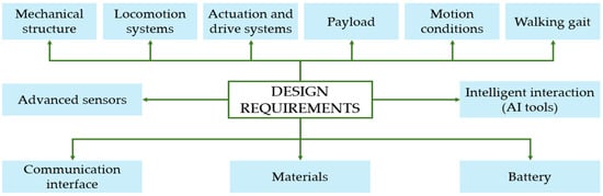 The design of a guide robot must take into account also key features such as mechanical structure, locomotion systems, drive and propulsion systems, payload, motion conditions, and gait. The robot must be equipped with advanced technologies to effectively and safely guide blind and elderly people. Sensors such as cameras, LiDAR, ultrasonic and infrared detectors enable it to map the environment, and they can locate a user and detect obstacles in real time, for accurately safe routes. The interaction between a user and a robot must be intuitive, based on voice commands and clear auditory signals. The robot must be able to provide spoken navigation instructions, environmental descriptions, and safety warnings, and must understand voice commands. The robot must be stable, and its design must include strong lightweight materials that make it portable. The battery must have sufficient autonomy for an extended use. In addition, it is essential to implement an AI system that allows the robot to adapt to the specific needs of the assisted person and the changing conditions of the environment.