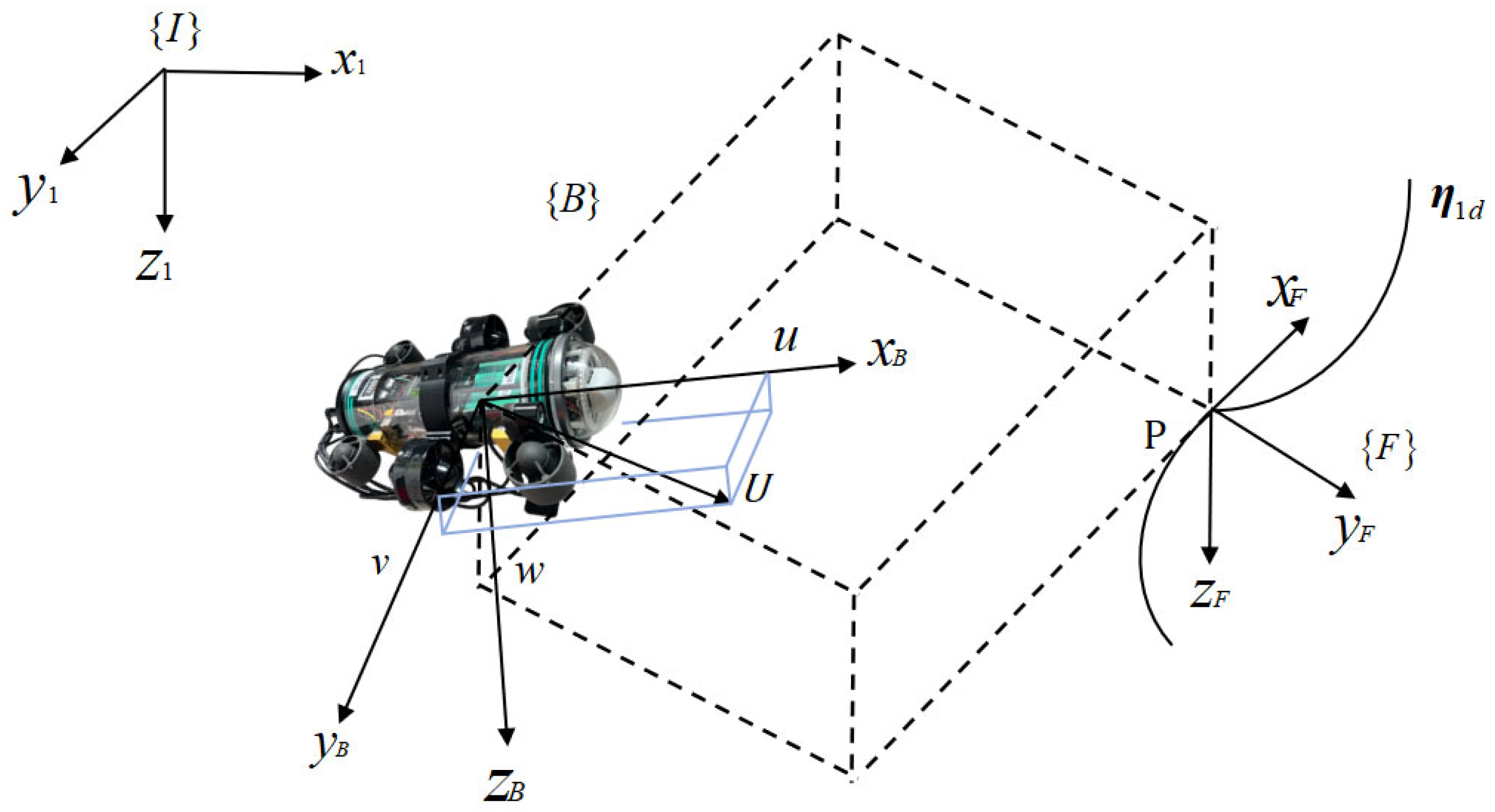 - Guo, L.; Zhou, R.; Guo, Q.; Ma, L.; Hu, C.; Luo, J. Spatial Trajectory Tracking of Underactuated Autonomous Underwater Vehicles by Model–Data–Driven Learning Adaptive Robust Control. J. Mar. Sci. Eng. 2025, 13, 1151. [Google Scholar] [CrossRef]