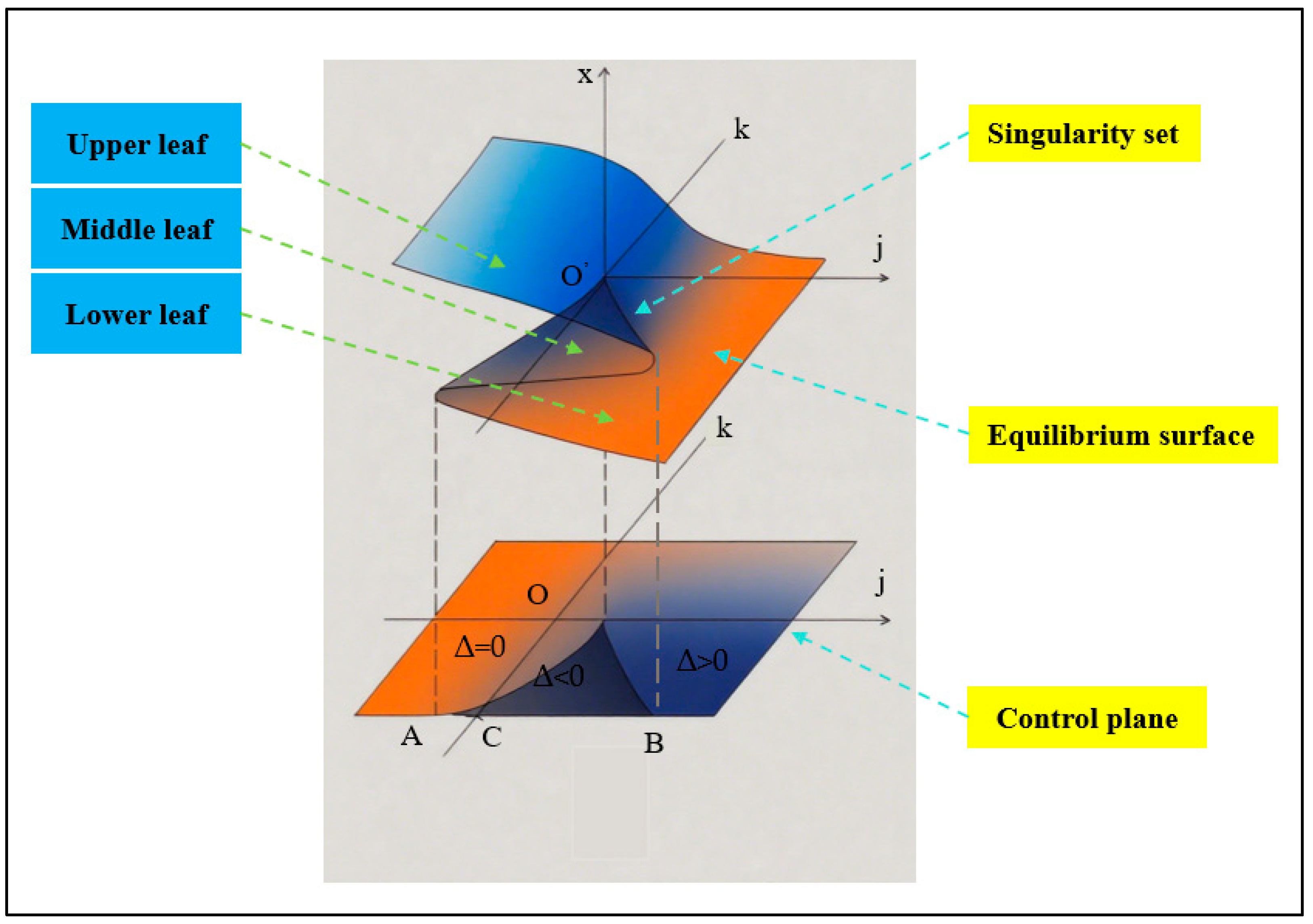 7]. Building on this framework, catastrophe theory, as an effective theoretical approach for studying abrupt state transitions and nonlinear evolution in complex systems, can further elucidate the critical conditions and evolutionary pathways associated with the transition of surrounding rock from stable to unstable states. By analyzing energy variation characteristics and discontinuities in system response, catastrophe theory enables the identification of sudden failures triggered by minor perturbations that may be overlooked by conventional methods [