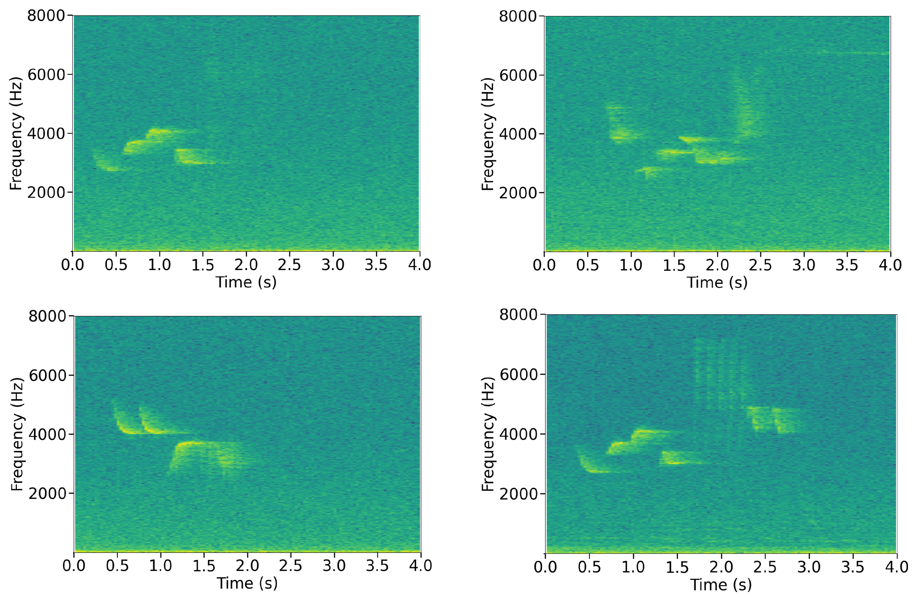 - Guei, A.C.; Christin, S.; Lecomte, N.; Hervet, É. ECOGEN: Bird sounds generation using deep learning. Methods Ecol. Evol. 2024, 15, 69–79. [Google Scholar] [CrossRef]