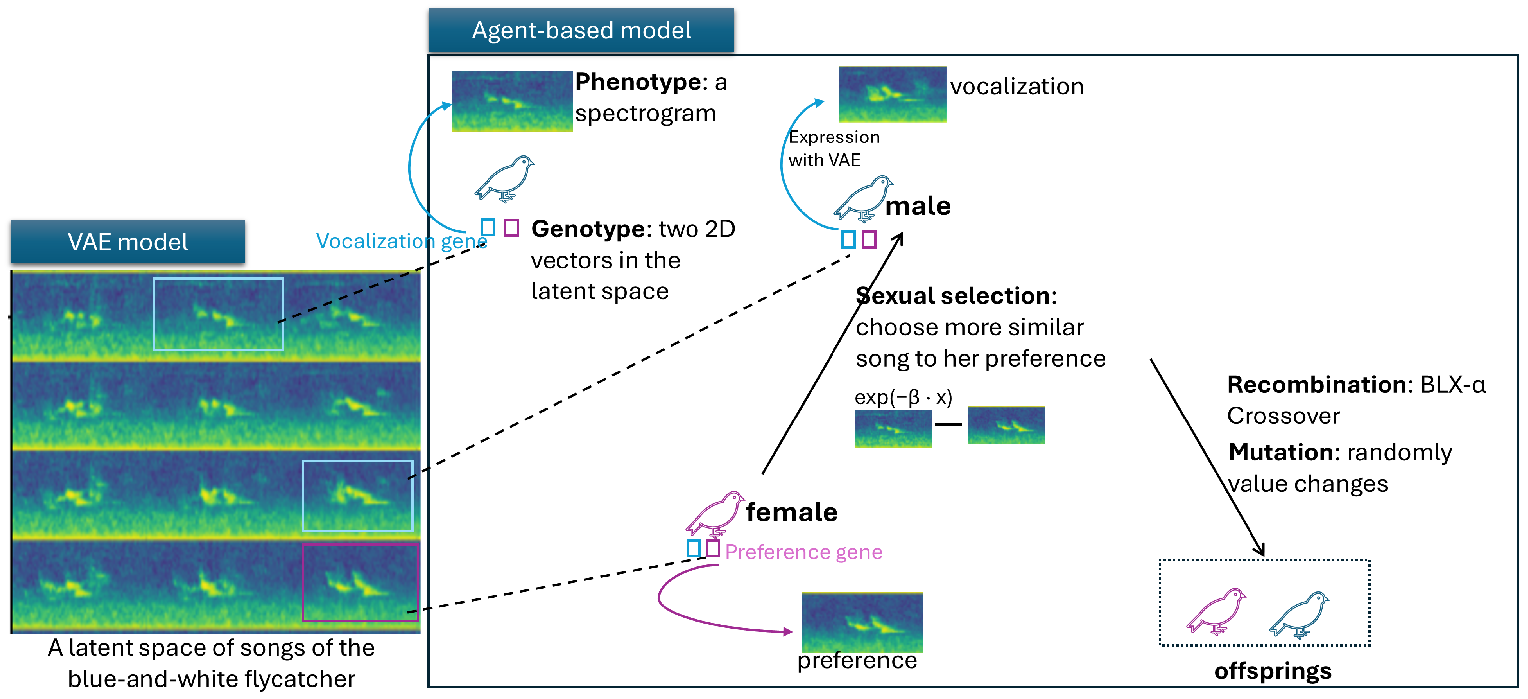 Zhao, H.; Arita, T.; Suzuki, R. Agent-Based Models of Sexual Selection in Bird Vocalizations Using Generative Approaches. Appl. Sci. 2025, 15, 10481. https://doi.org/10.3390/app151910481