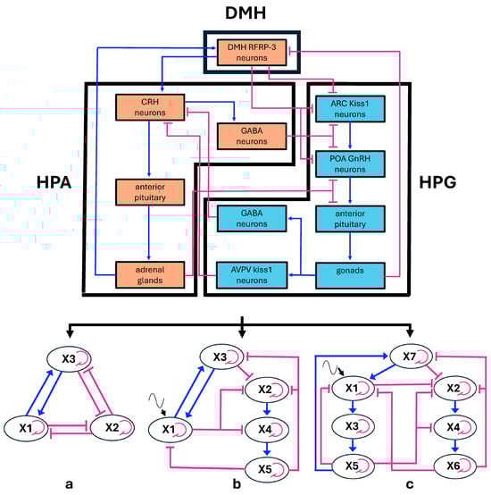 Chicago/Turabian StyleDemori, Ilaria, Seth Siriya, and Bruno Burlando. 2025. "Loop Modeling of the Reciprocal Inhibition Between HPA and HPG Endocrine Axes Reveals Transitions to Bistability and Critical Bifurcation Parameters" Applied Sciences 15, no. 19: 10483. https://doi.org/10.3390/app151910483
