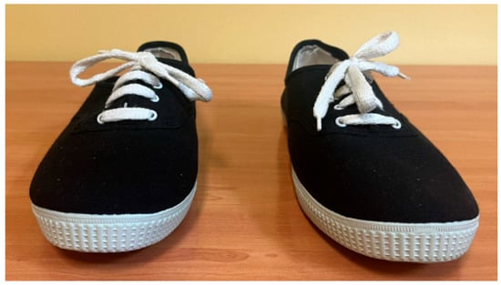 The insoles were placed in standard lace-up canvas shoes (Figure 2) before each measurement. Standard lace-up shoes refer to a generic model without added specific technologies such as cushioning systems or pronation control. These shoes are adjusted to the foot using a traditional lacing system, and the material they are made of is canvas.
